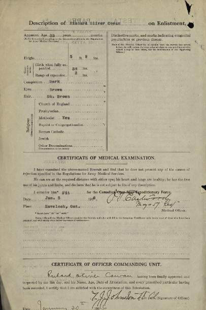 Cowan, Richard Oliver: Service no. 195539 CVWM Page Digitized Service Record Source: April 1917 casualty Find-A-Grave Unique War Memorial Memorial – Dedicated to Richard Oliver, killed in action at Vimy Ridge Cowan; plaque at Trent River. Source: CVWM “Killed in Action” Share this: Click to email a link to a friend (Opens in new window) Email Click to share on Facebook (Opens in new window) Facebook Click to share on X (Opens in new window) X Click to share on Reddit (Opens in new window) Reddit Click to share on LinkedIn (Opens in new window) LinkedIn Click to print (Opens in new window) Print Click to share on Tumblr (Opens in new window) Tumblr Click to share on Pocket (Opens in new window) Pocket Click to share on Pinterest (Opens in new window) Pinterest Click to share on Telegram (Opens in new window) Telegram Click to share on WhatsApp (Opens in new window) WhatsApp Like Loading...