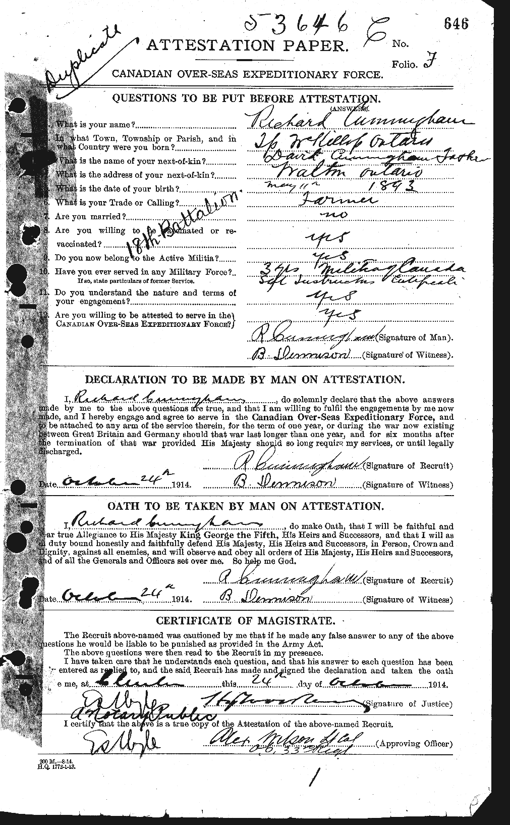 53646 Sjt. R. Cunningham. 18th Canadian Infy. Bn:
