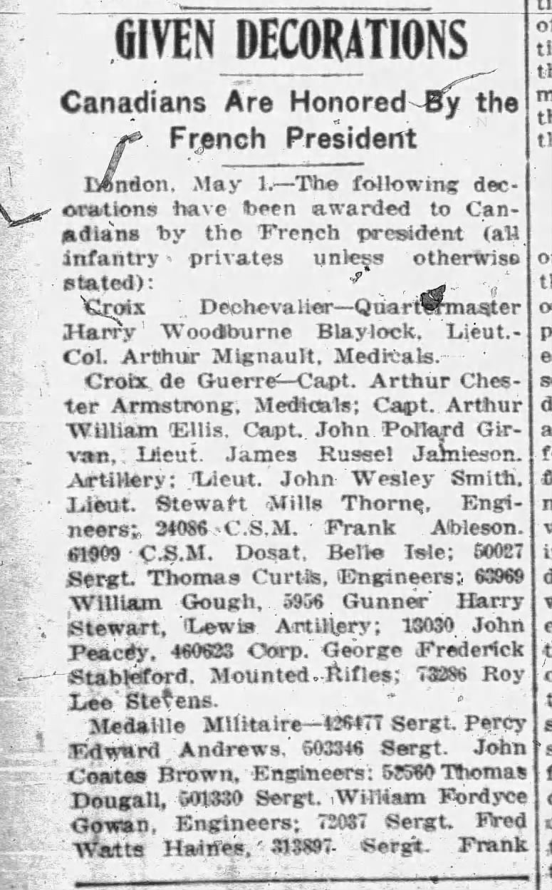 Source via Dawn Heuston via the 18th Battalion Facebook Group. London Gazette dated August 1, 1918.