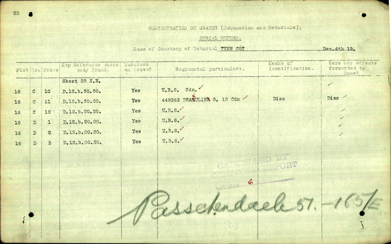Drakulis, George: Service no. 448363 CVWM Page Digitized Service Record Source: November 1917 casualty. Find-A-Grave Family Search “Killed in Action” Photo by Marg Liessens. Via CVWM. Share this: Click to email a link to a friend (Opens in new window) Email Click to share on Facebook (Opens in new window) Facebook Click to share on X (Opens in new window) X Click to share on Reddit (Opens in new window) Reddit Click to share on LinkedIn (Opens in new window) LinkedIn Click to print (Opens in new window) Print Click to share on Tumblr (Opens in new window) Tumblr Click to share on Pocket (Opens in new window) Pocket Click to share on Pinterest (Opens in new window) Pinterest Click to share on Telegram (Opens in new window) Telegram Click to share on WhatsApp (Opens in new window) WhatsApp Like Loading... Leave a comment Cancel reply Δ This site uses Akismet to reduce spam. Learn how your comment data is processed.