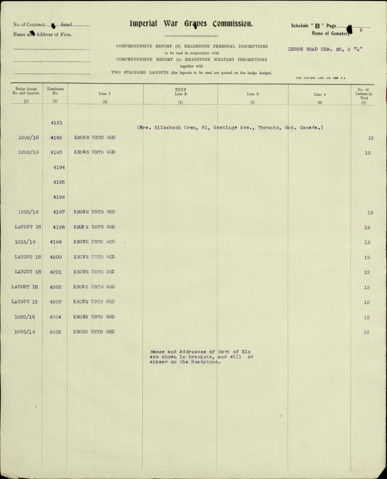 He served with the 18th Battalion until his death by enemy action on September 15, 1916, at Flers-Courcelette, Somme. He was first reported wounded, then wounded and missing, and as killed in action.