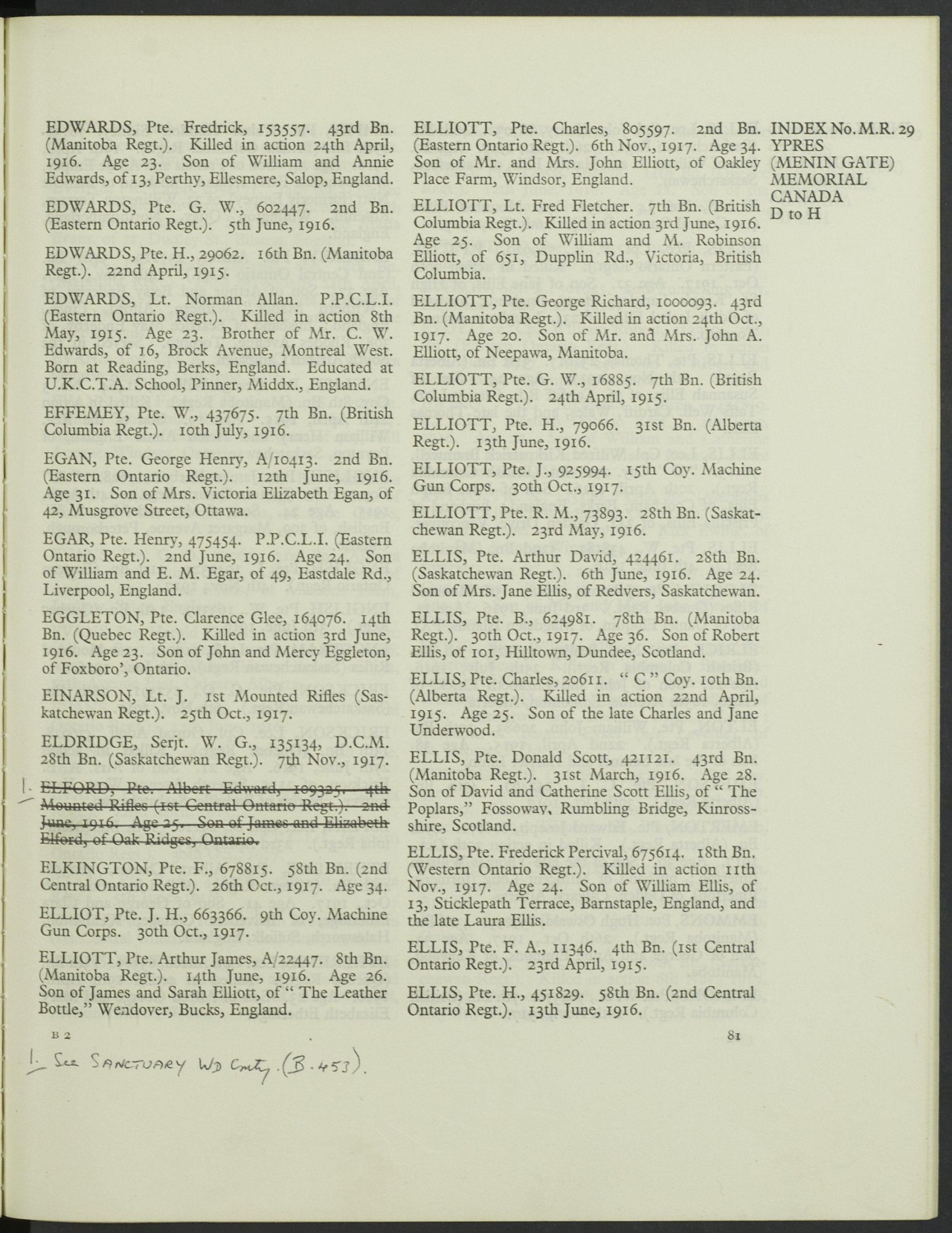 The news of his death was received by his brother, E.H. Ellis, butcher, from his parents in England. Pte. Ellis enlisted with the 168th battalion.