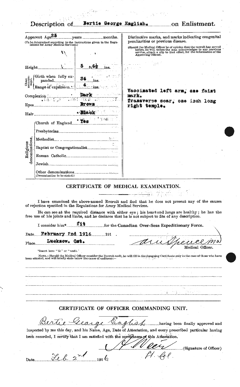 Private English arrived in Liverpool October 28, 1916 and then transferred to the 4th Reserve Battalion at Witley Camp – Surrey in Surrey on February 23, 1918. He then was posted to the 18th Battalion and proceeded into France and joined his unit in the field on April 12, 1918.