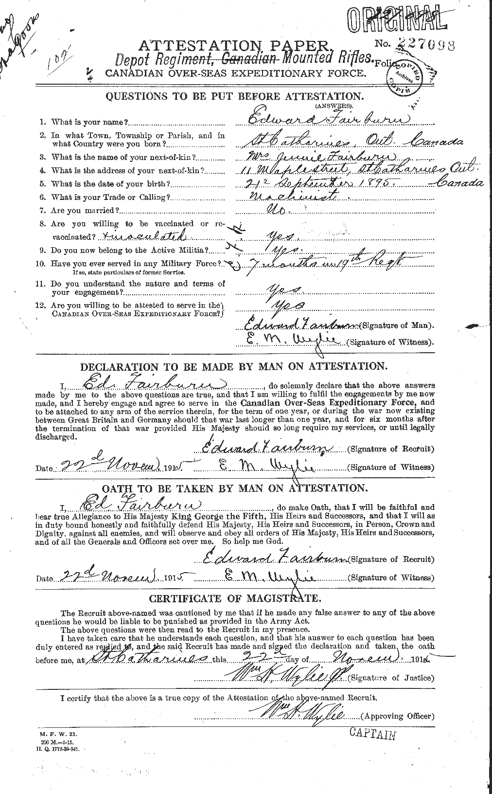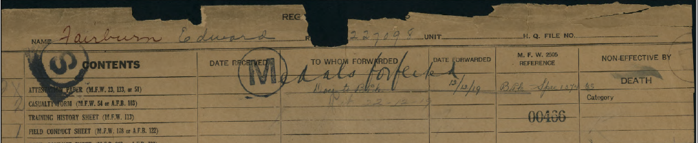 Fairburn, Edward: Service no. 227098