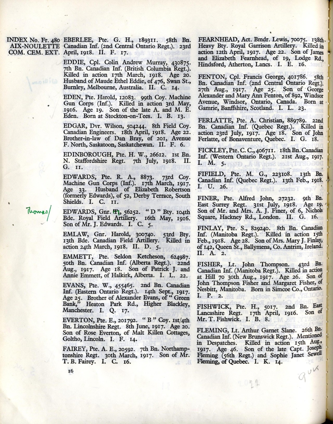 NOTE: This soldier left an inscription on the walls of the castle of Bouvigny-Boeffles, Pas-de-Calais, France. This information is available in a book compiled by Machine Patrice.
