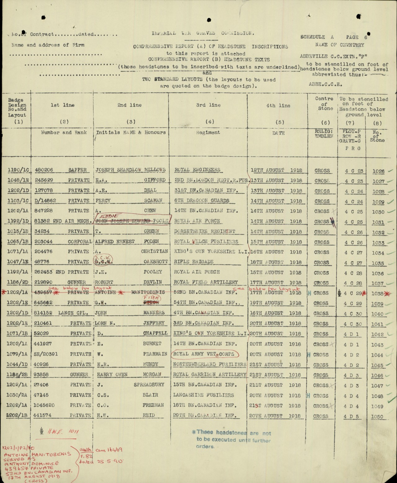 He served with the Battalion until his wounding on August 8, 1918. He suffered a GSW to the head and would die later of those wounds on August 21, 1918 at No. 3 Australian General Hospital.