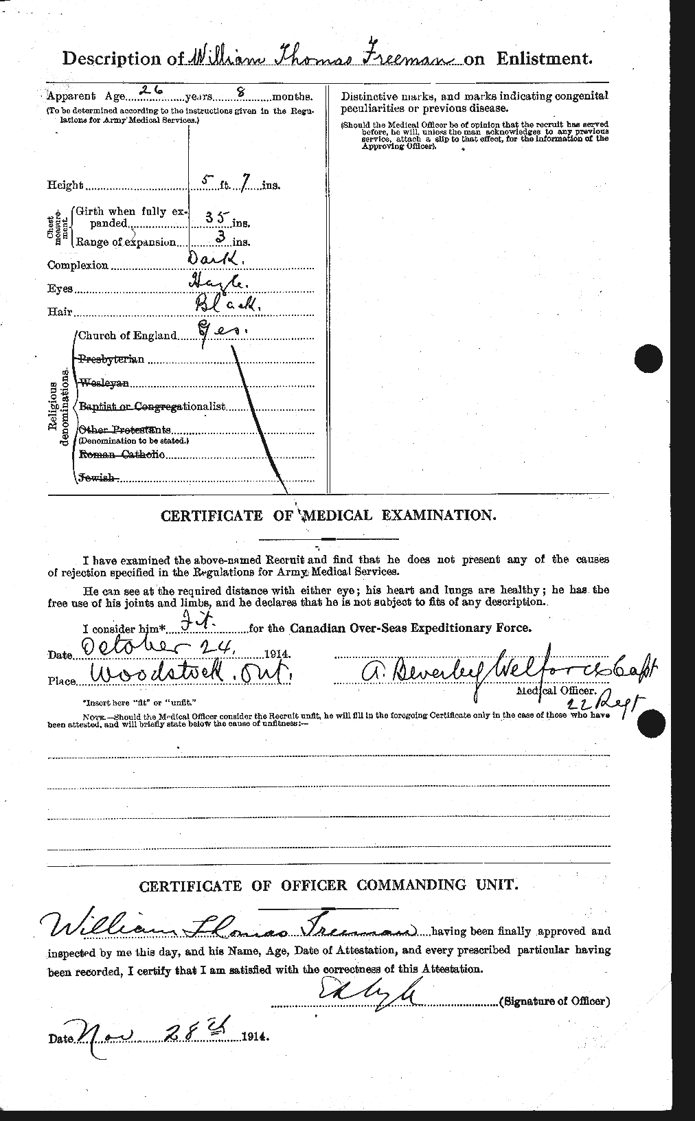 Killed in action. He enlisted here in the 18th Battalion. His brother lives at 355 Simcoe Street. He was farming at Mt. Elgin when he enlisted. His parents live in England