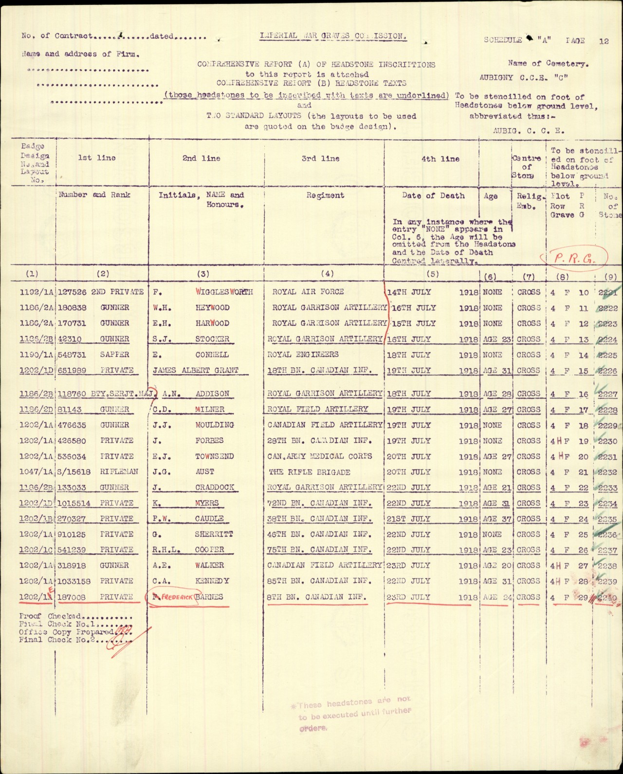 Pte. Grand Dies of Wunds. [sic]