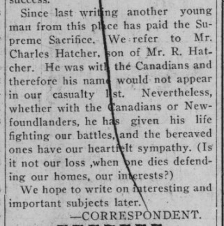 Family Search: When Private Charles Robert Hatcher was born on 21 June 1892, in Burgeo, Newfoundland and Labrador, Canada, his father, Robert Hatcher, was 46 and his mother, Susan Ingram, was 22. He lived in Halifax, Nova Scotia, Canada in 1915. He registered for military service in 1915. In 1915, at the age of 23, his occupation is listed as sailor in Halifax, Nova Scotia, Canada. He died on 19 June 1916, in Ieper, West Flanders, Belgium, at the age of 23, and was buried in Zillebeke, Ieper, West Flanders, Belgium.