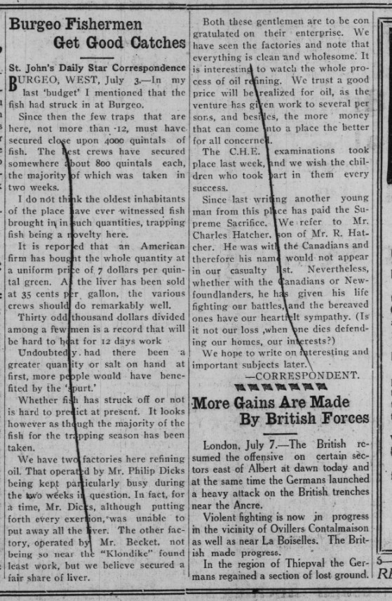 Family Search: When Private Charles Robert Hatcher was born on 21 June 1892, in Burgeo, Newfoundland and Labrador, Canada, his father, Robert Hatcher, was 46 and his mother, Susan Ingram, was 22. He lived in Halifax, Nova Scotia, Canada in 1915. He registered for military service in 1915. In 1915, at the age of 23, his occupation is listed as sailor in Halifax, Nova Scotia, Canada. He died on 19 June 1916, in Ieper, West Flanders, Belgium, at the age of 23, and was buried in Zillebeke, Ieper, West Flanders, Belgium.