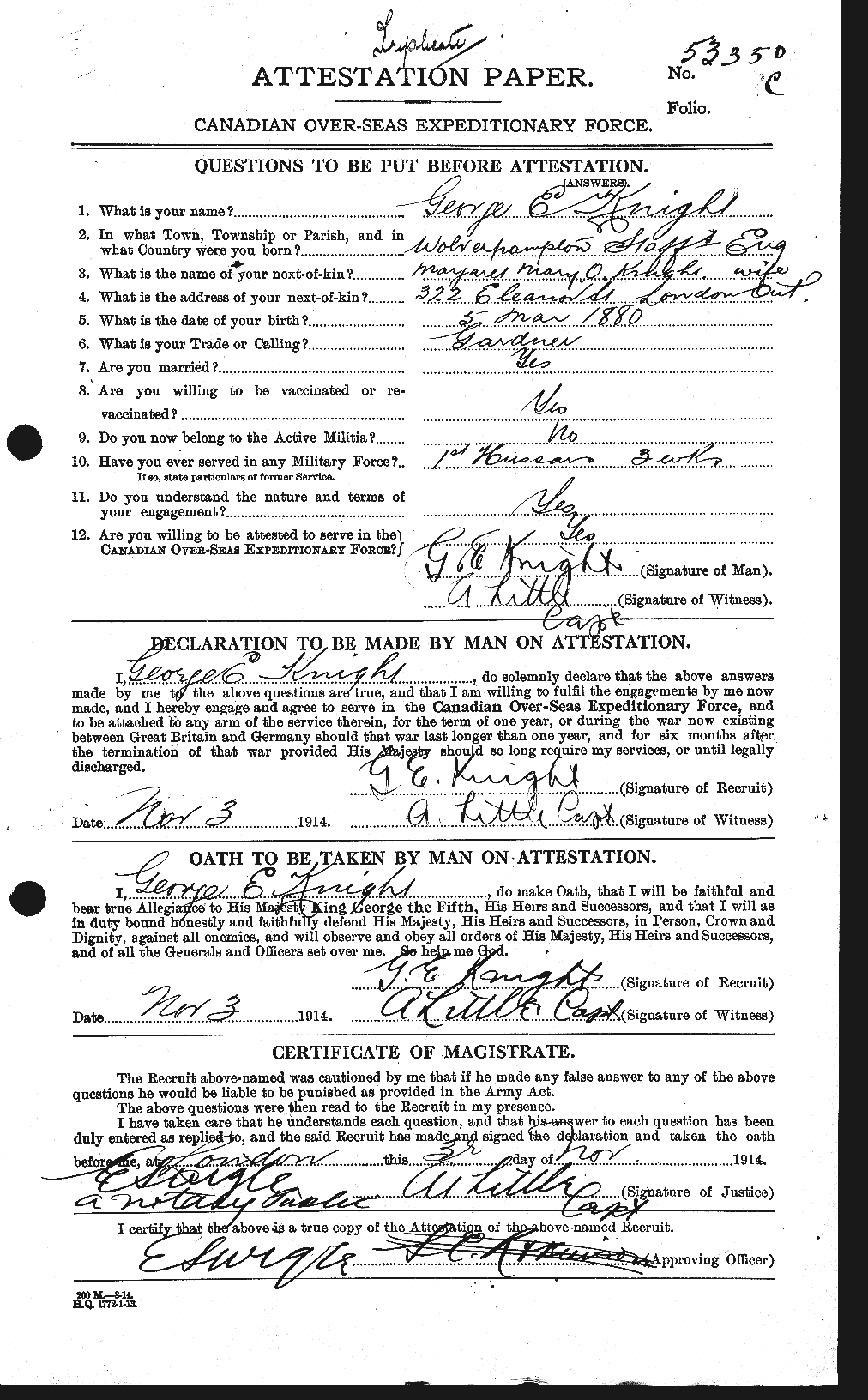 Listed incorrectly as having regimental number 53390 in the 1915 Nominal Roll.