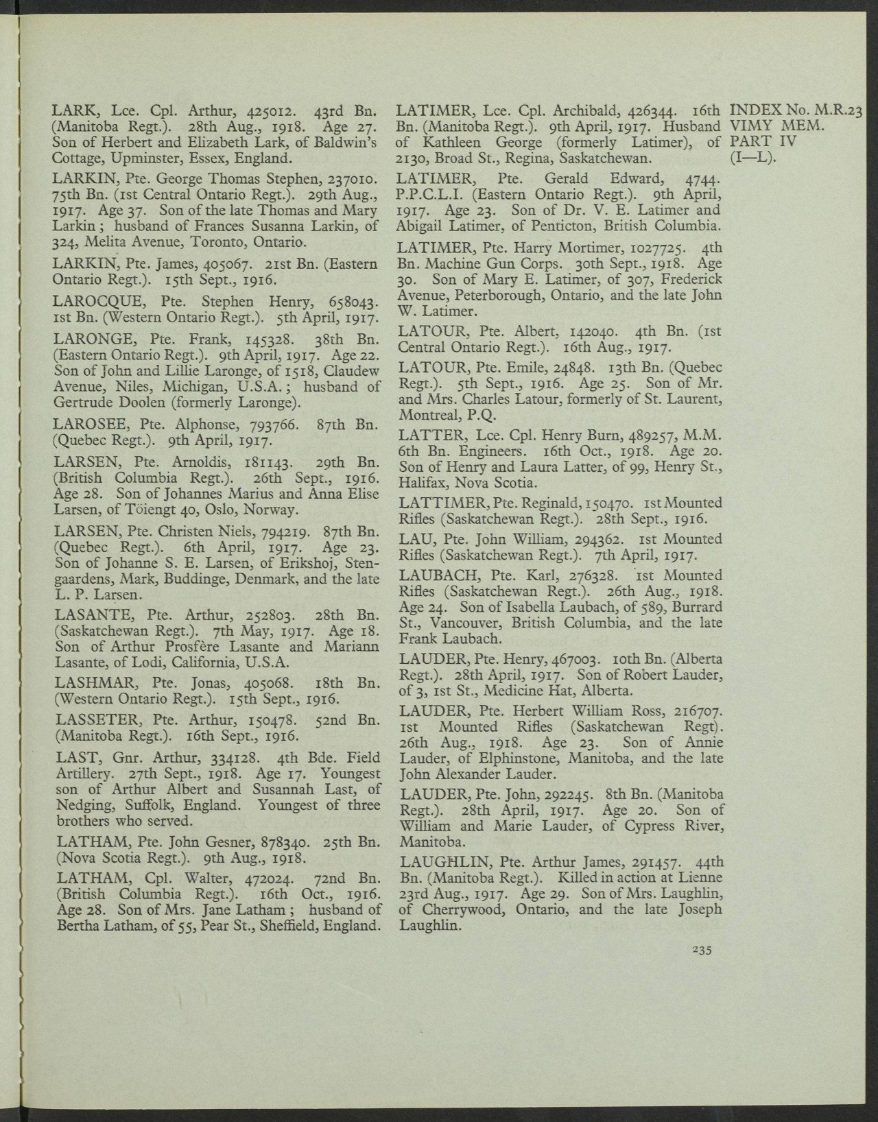 PTE. JACK LASHMAR, officially reported missing on September 15th, is a brother of Mr. Thomas Lashmar, 452 Brock avenue. He was about 40 years of age and unmarried. He enlisted in August, 1915, and went overseas in October last and has served in the trenches since February. Prior to enlistment he was employed with Southam Press Company. In his younger days he served with the nave in England.