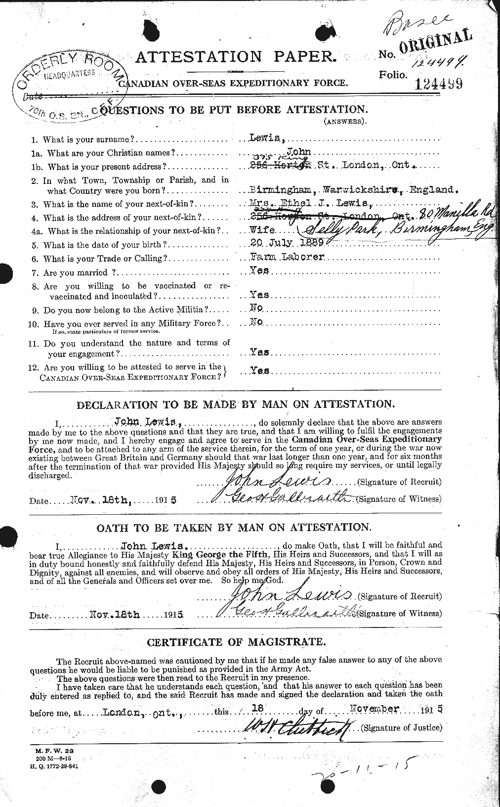 “Killed in Action” He took part with his Company in the attack on Hill 70, Lens, and was killed by a rifle bullet, shortly after the objective had been reached.