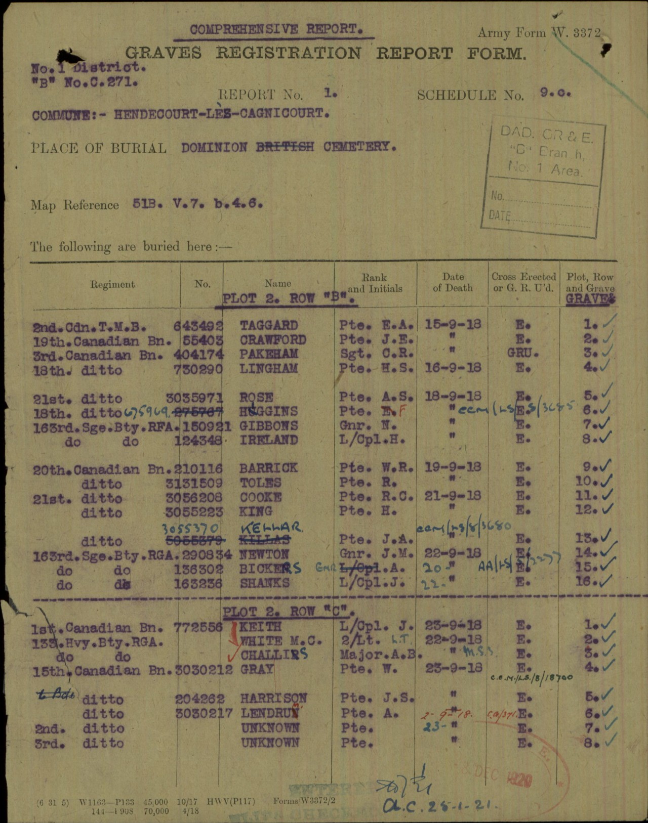 Family Search: Private Herbert Spencer Lingham was born on 9 December 1898, in Hackney, London, England, United Kingdom. He immigrated to United States in 1908 and lived in Galt, Waterloo, Ontario, Canada in 1915. He registered for military service in 1915. In 1915, at the age of 17, his occupation is listed as farm labourer in Galt, Waterloo, Ontario, Canada. He died on 15 September 1918, in Villiers-lès-Cagnicourt, Pas-de-Calais, Nord-Pas-de-Calais, France, at the age of 19, and was buried in Dominion Cemetery, Hendecourt-lès-Cagnicourt, Pas-de-Calais, Nord-Pas-de-Calais, France