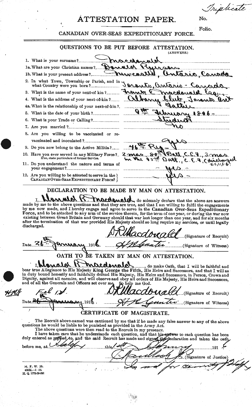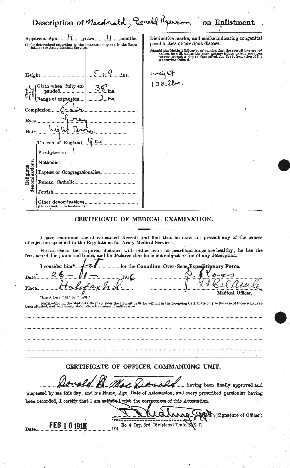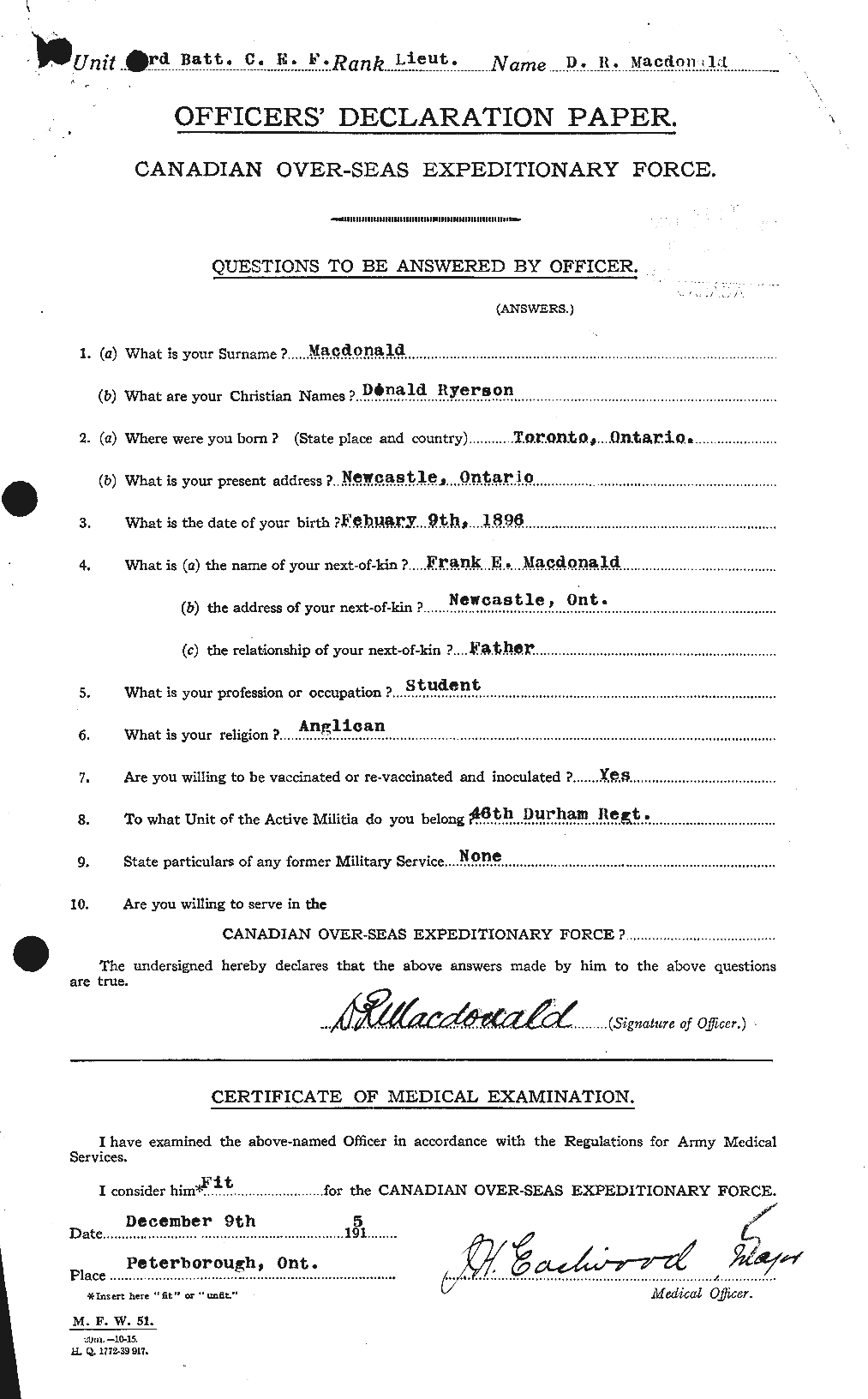 MacDonald, Donald Ryerson: Service no. 455942 / 511926