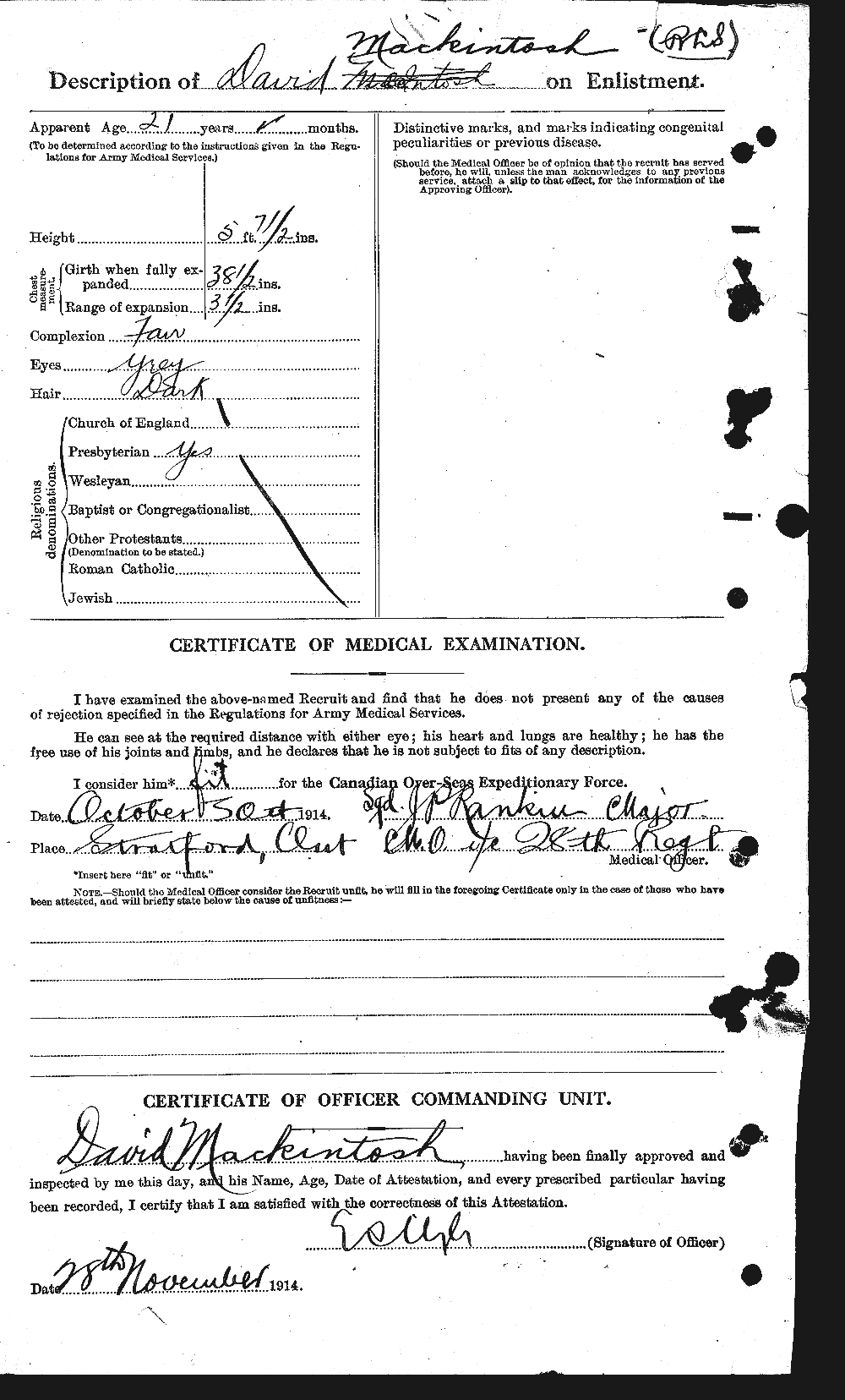 “Killed in Action.” He was killed during the advance on Courcelette. No further information as to the actual circumstances under which he met his death is available.