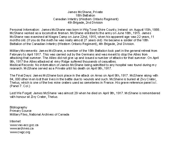 Biography – page 1 – Biography courtesy of the Lest We Forget remembrance initiative of the Smith Falls District Collegiate. Source: CVWM