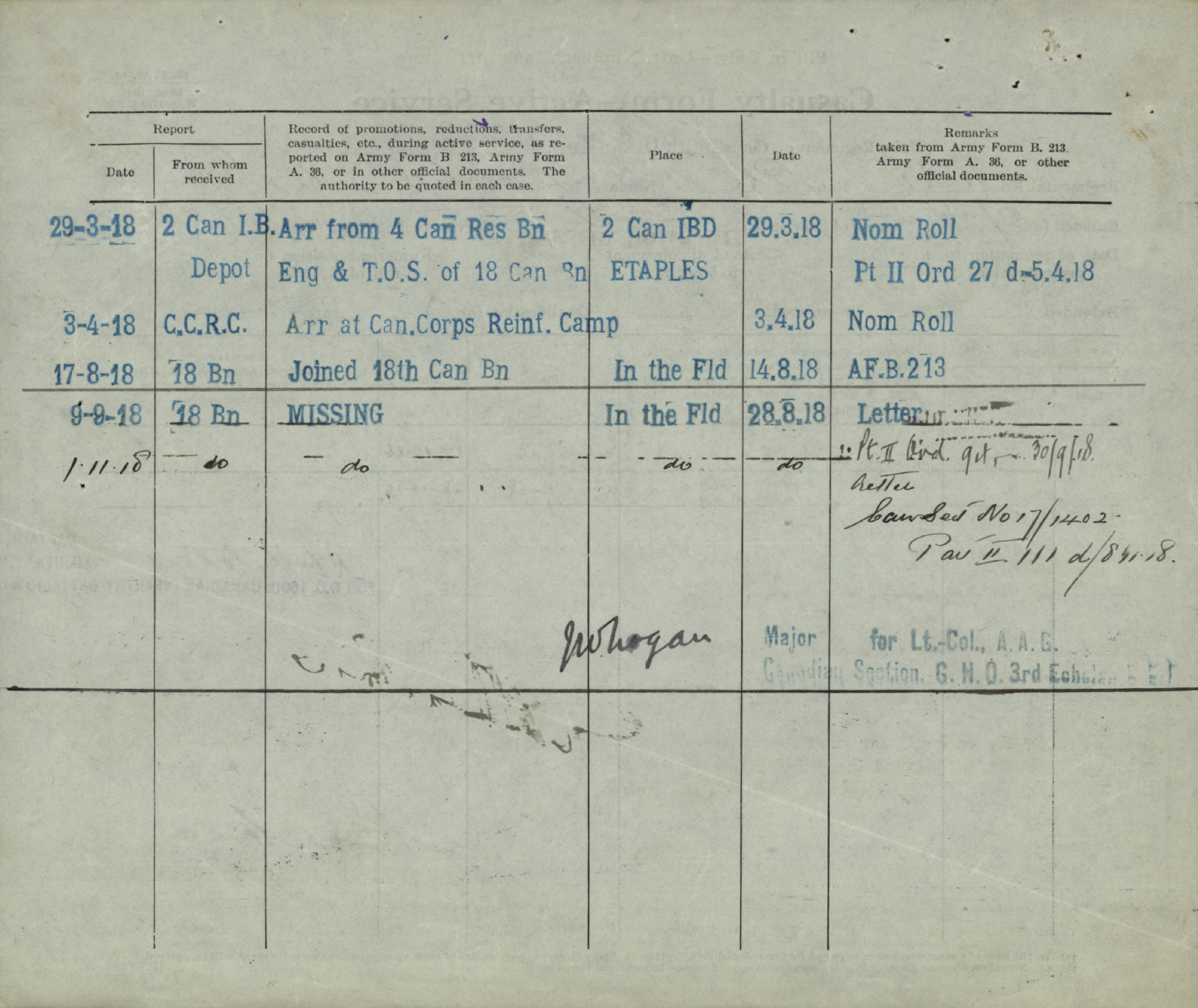 “Previously reported Missing, now Killed in Action” Whilst taking part in in operations at Vis-en-Artois, he was hit in the legs and body and instantly killed by shrapnel from an enemy shell.