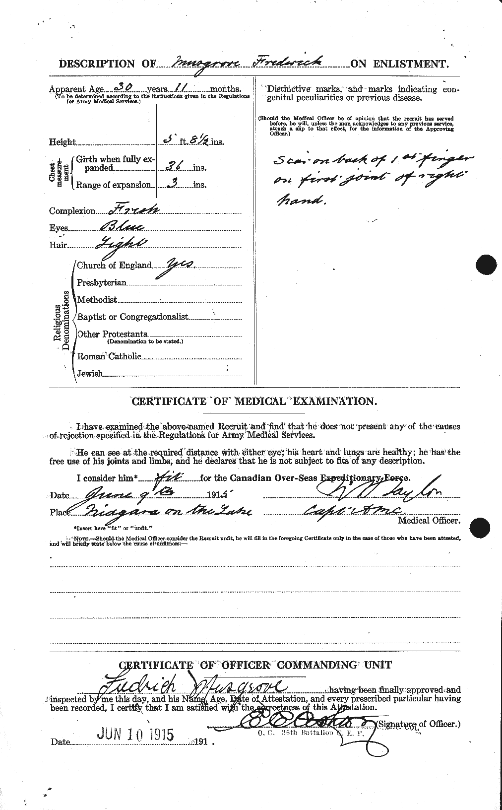 Musgrove, Frederick: Service no. 407059. Source: Toronto Telegram. October 1916. Via David Archer.