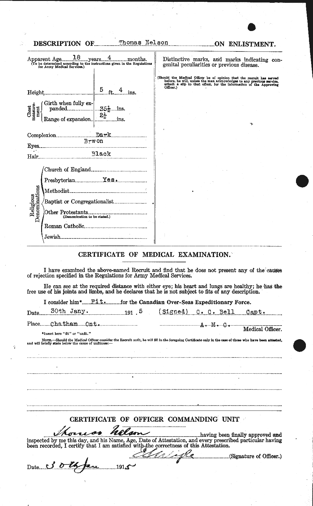Ex Jack Nelson, grand nephew : Thomas emigrated to Canada before the war. He and his brother William were both killed by the same shell.