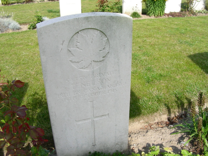 CWGC : Private T. Nelson 54356 Canadian Infantry 18th Battalion Died 13/10/1915