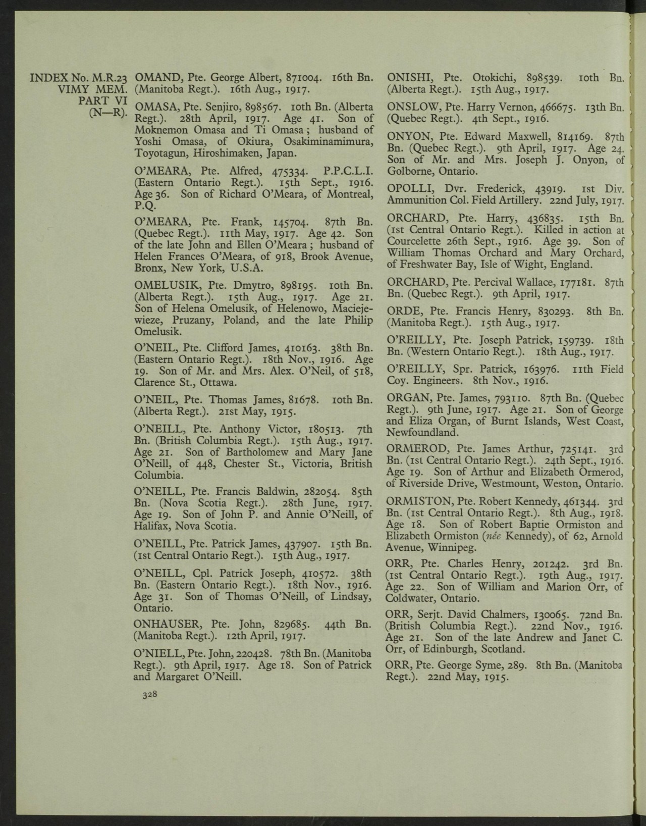 Inscription – His name as it is inscribed on the Vimy Memorial (2010). Over 11,000 fallen Canadians having no known place of burial in France, are honoured on this Memorial. May they never be forgotten. (J. Stephens). Source: CVWM