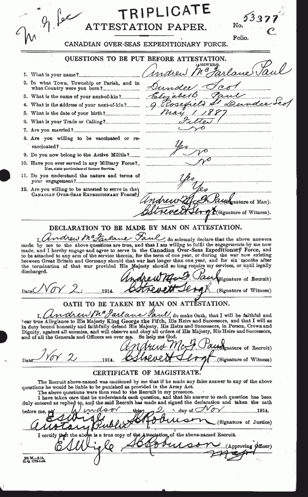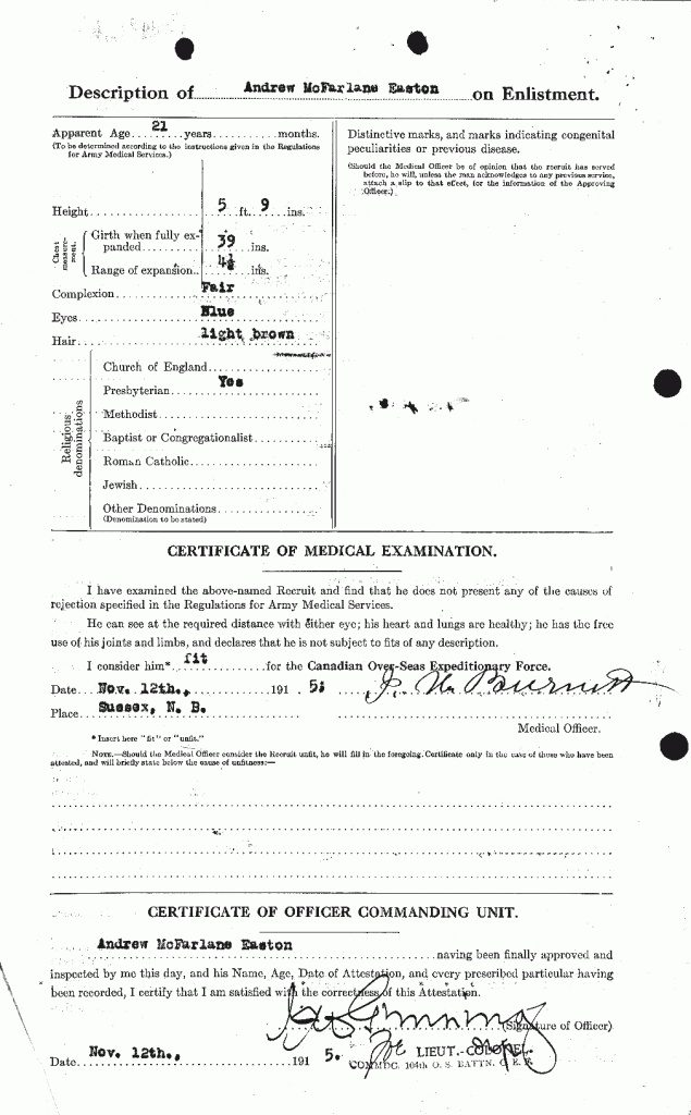 Source: 18th Battalion Nominal Roll, April 1915.