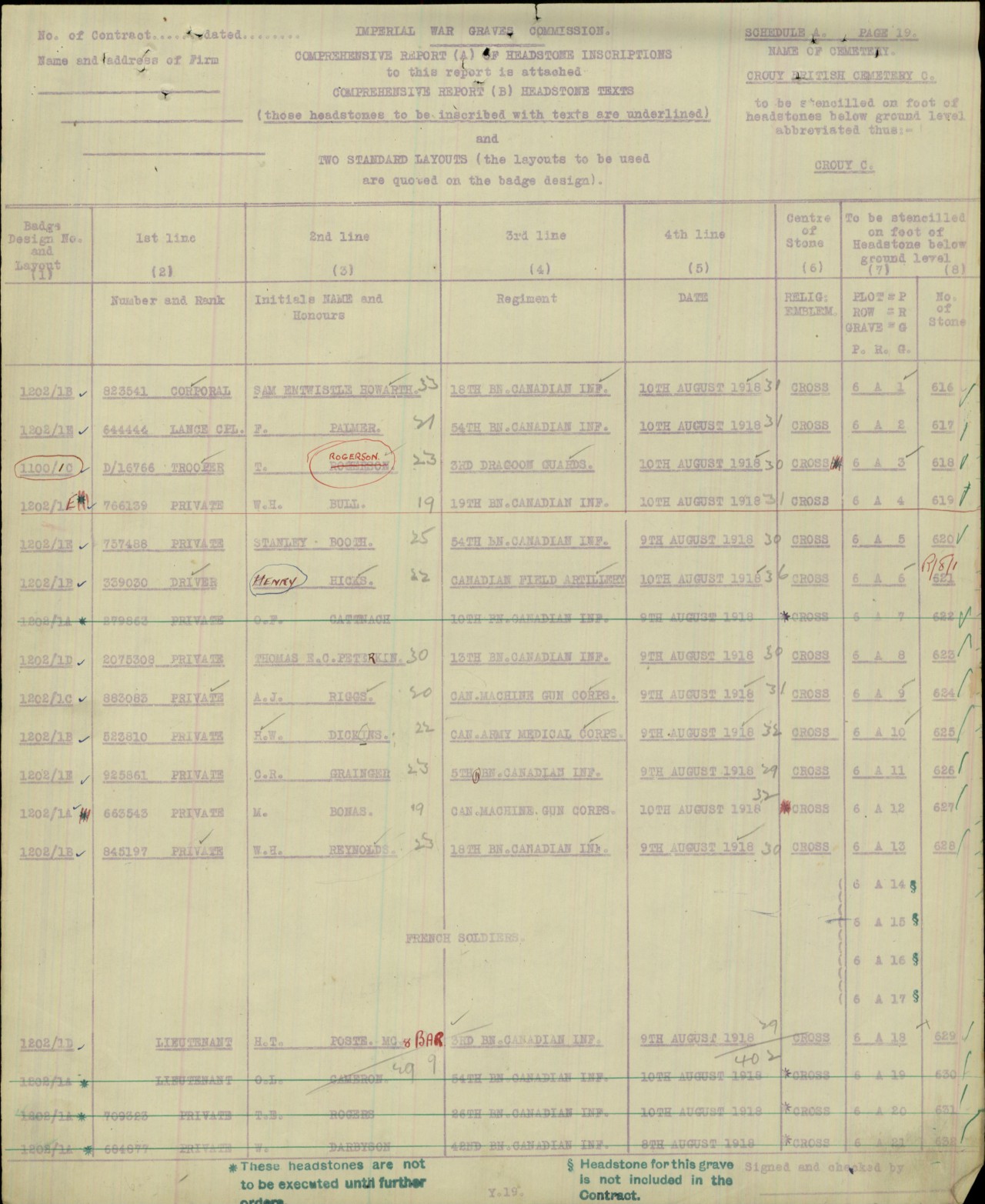 “Died of Wounds.” While taking part in operations East of AMIENS, on August 8th, 1918, he was severely wounded in the chest by enemy machine gun bullets. His wounds were dressed and he was taken to No. 5 Casualty Clearing Station where he died the following day.