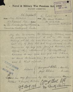 Naval and Military War Pensions Act 1915 Form re will of Private Alexander Ritchie 406384 Like Loading... Leave a comment Cancel reply Δ This site uses Akismet to reduce spam. Learn how your comment data is processed.