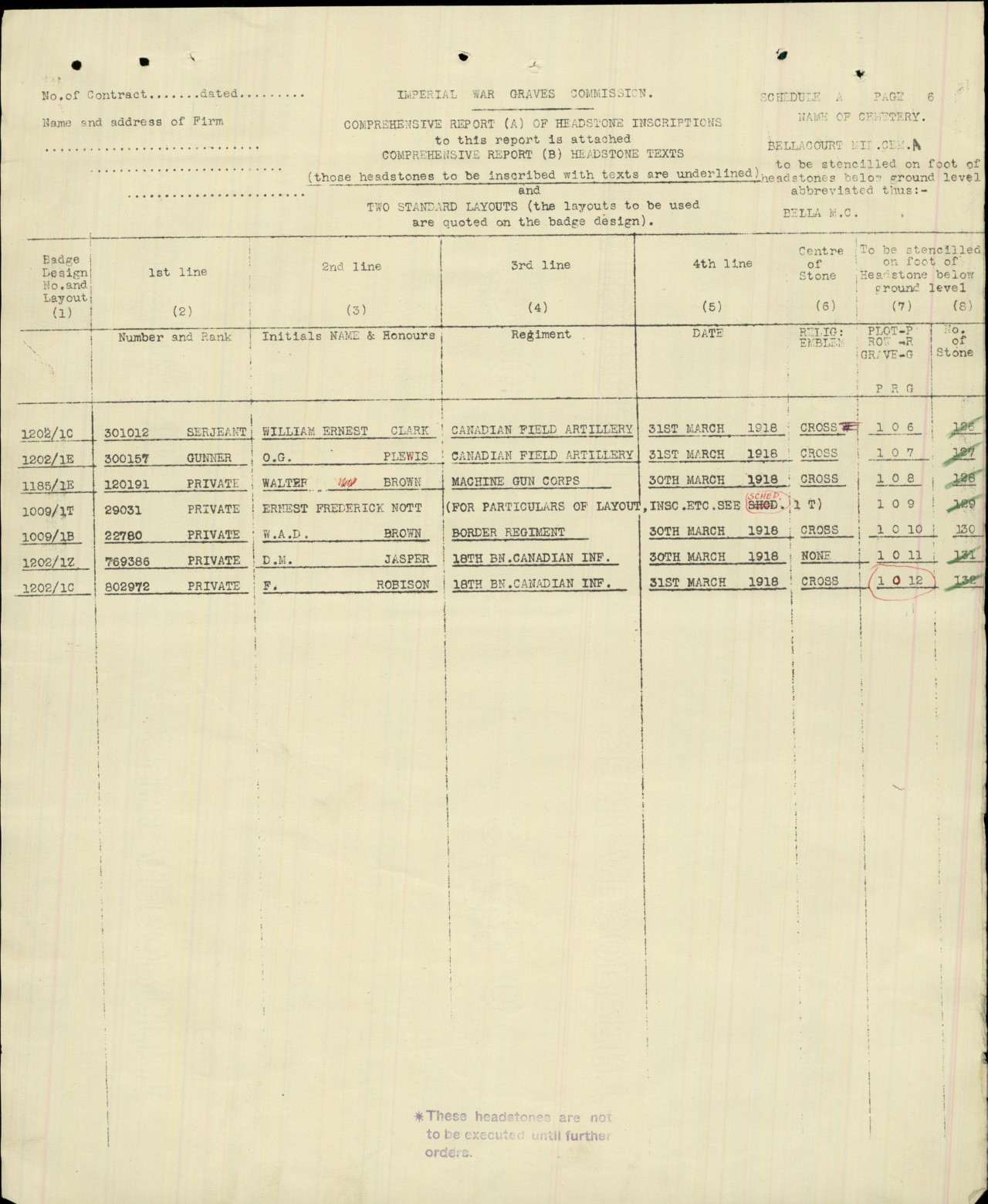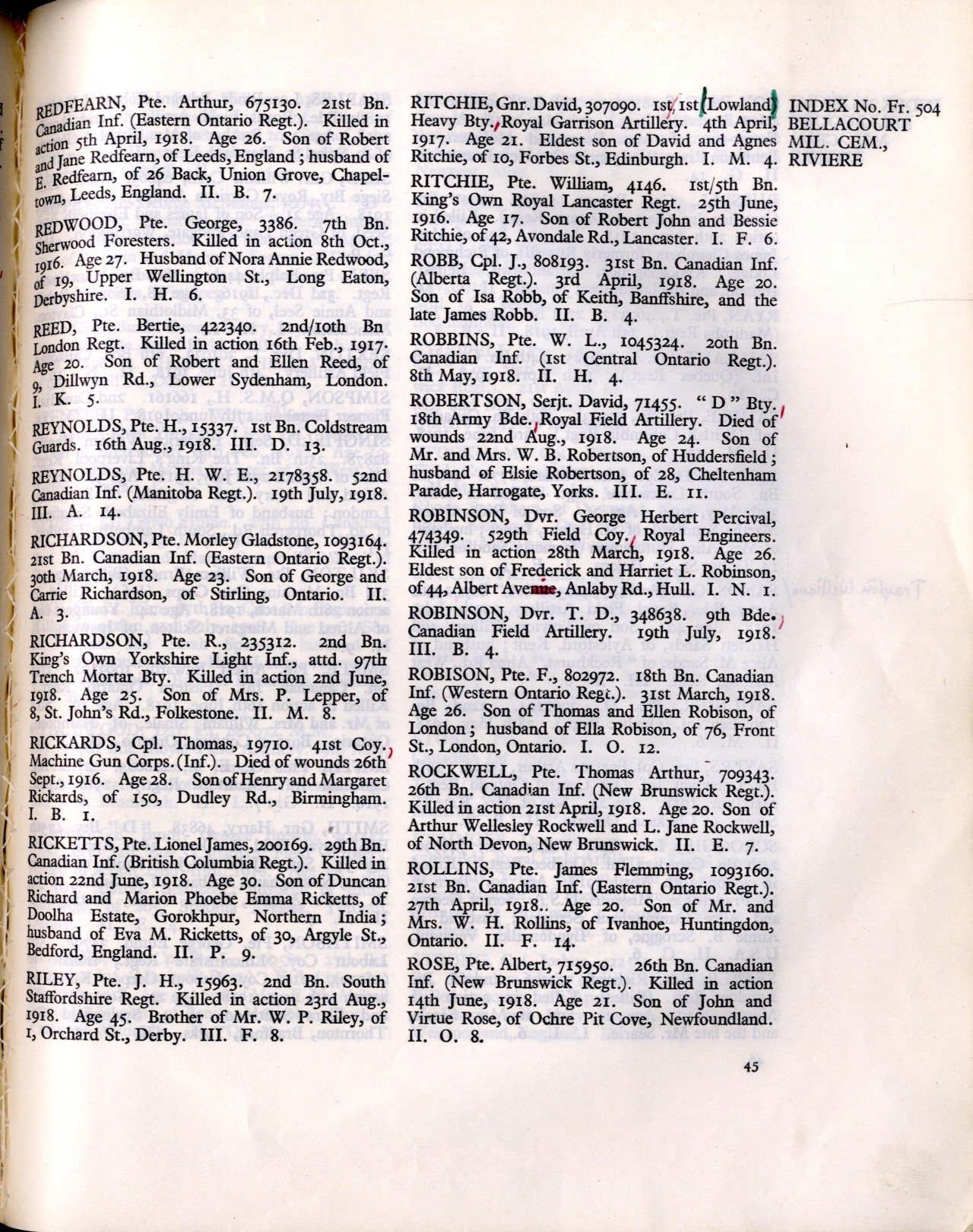 Enlisted in the 135th Batt’n. Transferred to the 18th Batt’n. February 1916. Killed at Arras, March 31st, 1918. Age 26 years.