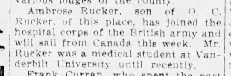 Note that a news article exists in Fort William Daily Times Journal, 14 Jan 1916 titled “Fort William Doctor Takes Bullet From Brain Of Soldier Who Regains Health After Remarkable Operation” relating to Major John G. Hunt and Private Rucker. in the article Pte. Rucker survives. The following keywords are present: Great War ; World War I ; WWI ; Major John G. Hunt ; Fort William resident/doctor ; Army Medical Corps ; Preforms operation on Pte. Rucker ; 18th Battalion ; No.1 Canadian Military Hospital.
