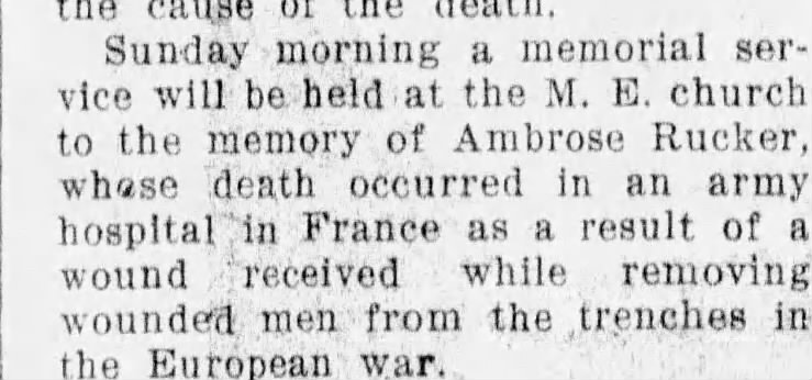 Note that a news article exists in Fort William Daily Times Journal, 14 Jan 1916 titled “Fort William Doctor Takes Bullet From Brain Of Soldier Who Regains Health After Remarkable Operation” relating to Major John G. Hunt and Private Rucker. in the article Pte. Rucker survives. The following keywords are present: Great War ; World War I ; WWI ; Major John G. Hunt ; Fort William resident/doctor ; Army Medical Corps ; Preforms operation on Pte. Rucker ; 18th Battalion ; No.1 Canadian Military Hospital.