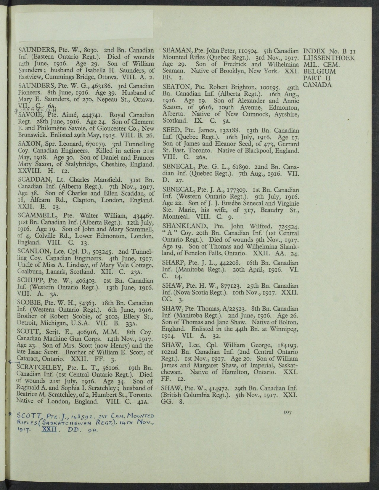 Brother to Private Colin Scobie, reg. no. 123792. He survived the war only to die on a train on the way home due to illness attributed to his service. He died on January 29, 1919.