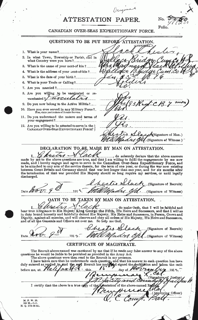 Served with the 18th Battalion and then was transferred to the 42nd.