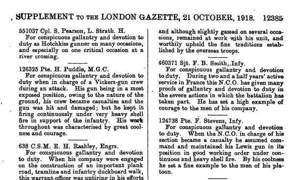 The London Gazette Publication date: 18 October 1918 Supplement: 30961 Page: 12385