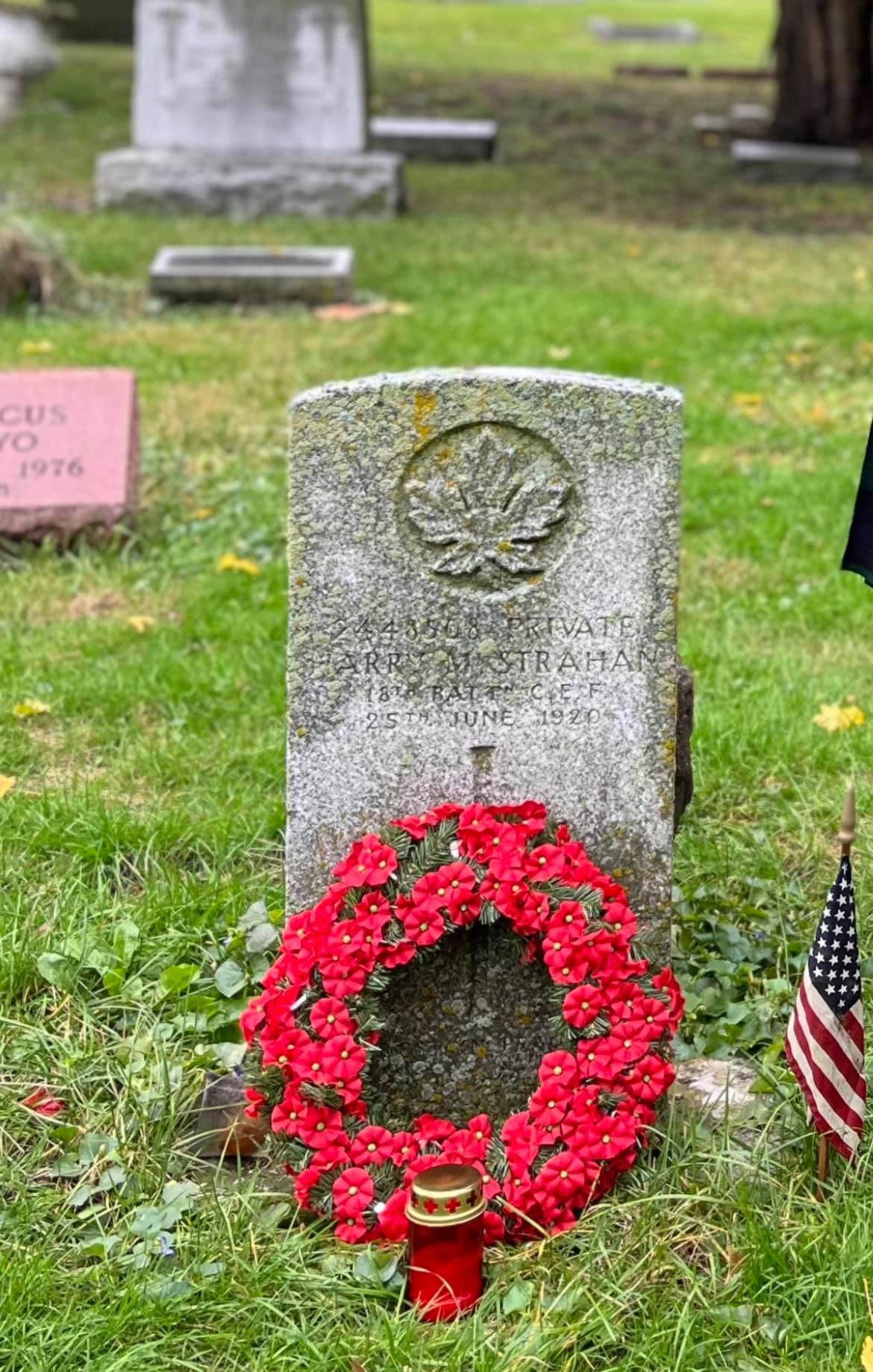 | June 15, 1920 | Deceased | Dies from Pulmonary Tuberculosis and is commemorated at the Canadian Virtual War Memorial and page 554 of the Book of Remembrance. He is buried at Mount Hope Cemetery and Mausoleum Urbana, Champaign County, Illinois, USA. |