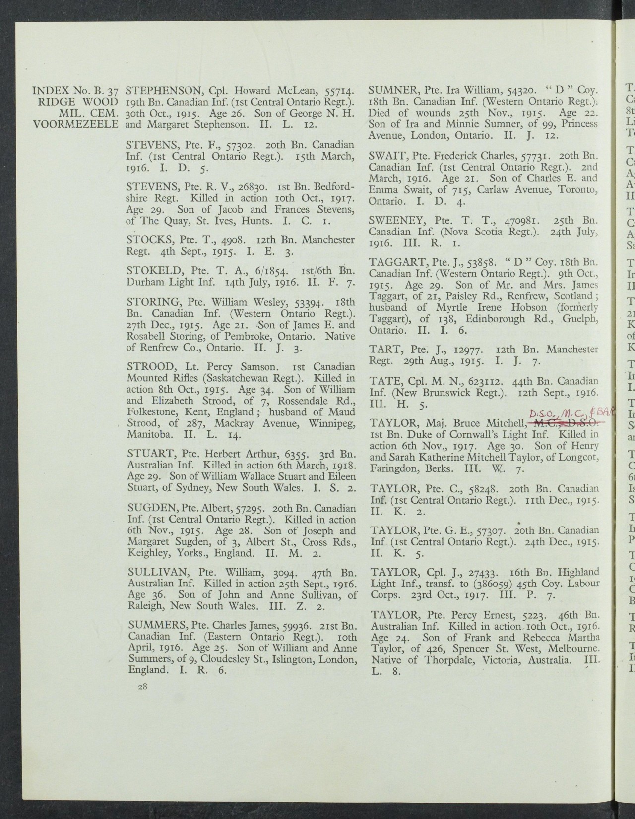 Inscribed on Sarnia cenotaph as Summers, M.J.