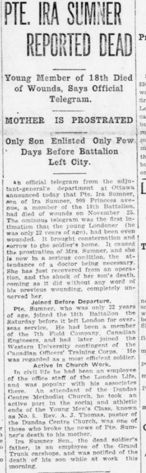 Son of Ira and Minnie Sumner, of 99, Princess Avenue, London, Ontario.