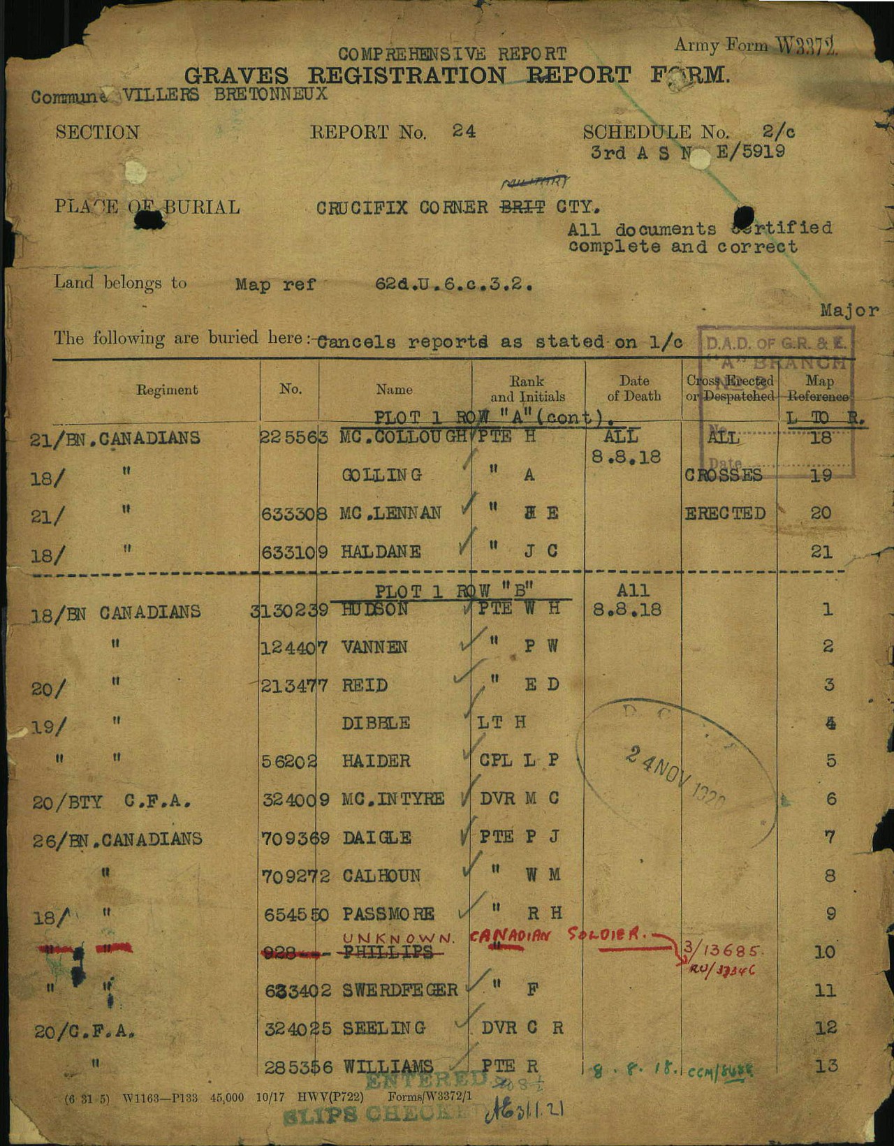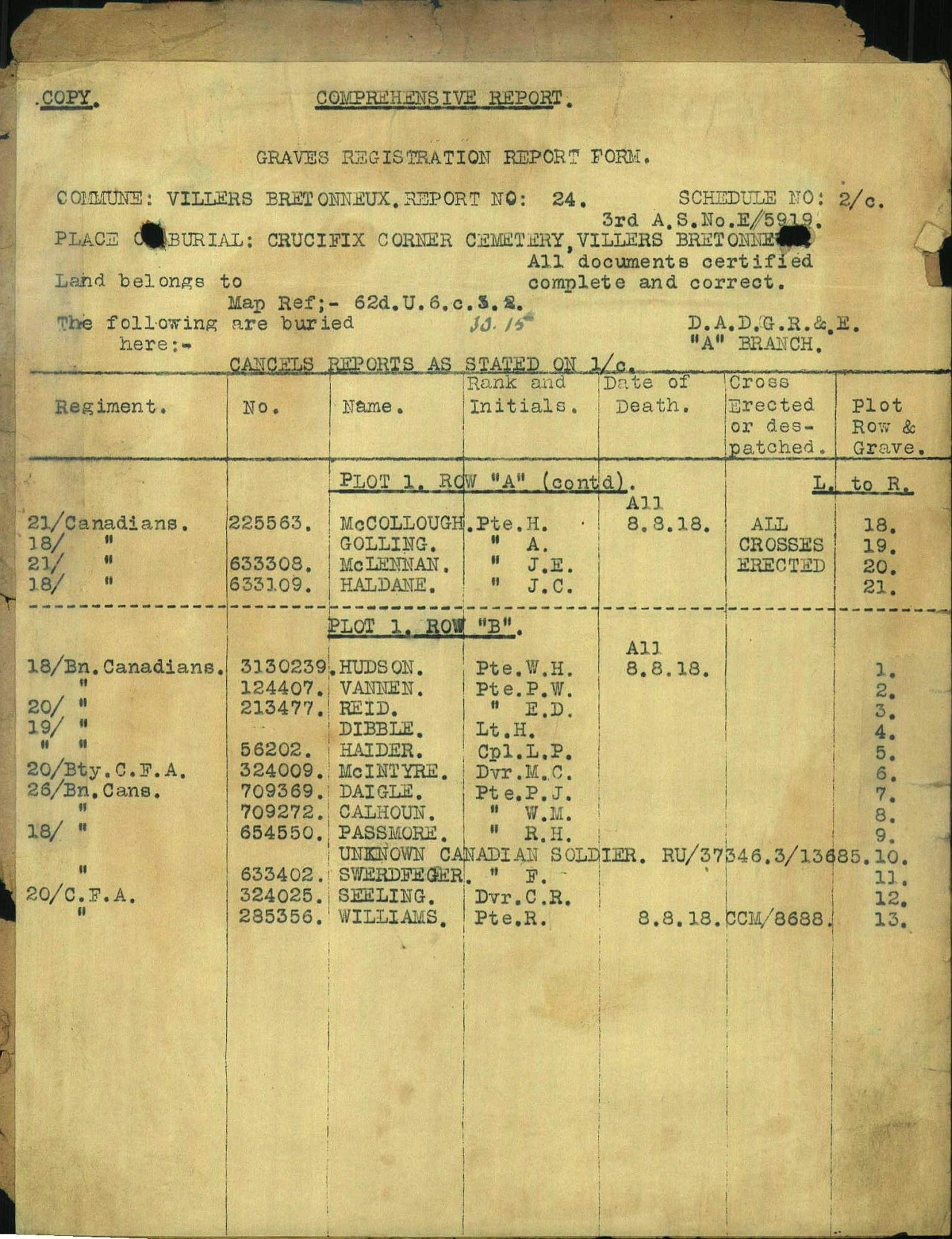 On the morning of August 8, 1918 there was a heavy mist which obscured the enemy lines and their objectives. Zero hour was set for 4:30 am and at 4 am the enemy artillery laid down a heavy barrage onto the Battalion position and with very heavy fire onto the wood to the south-west of Villers Brettoneaux.