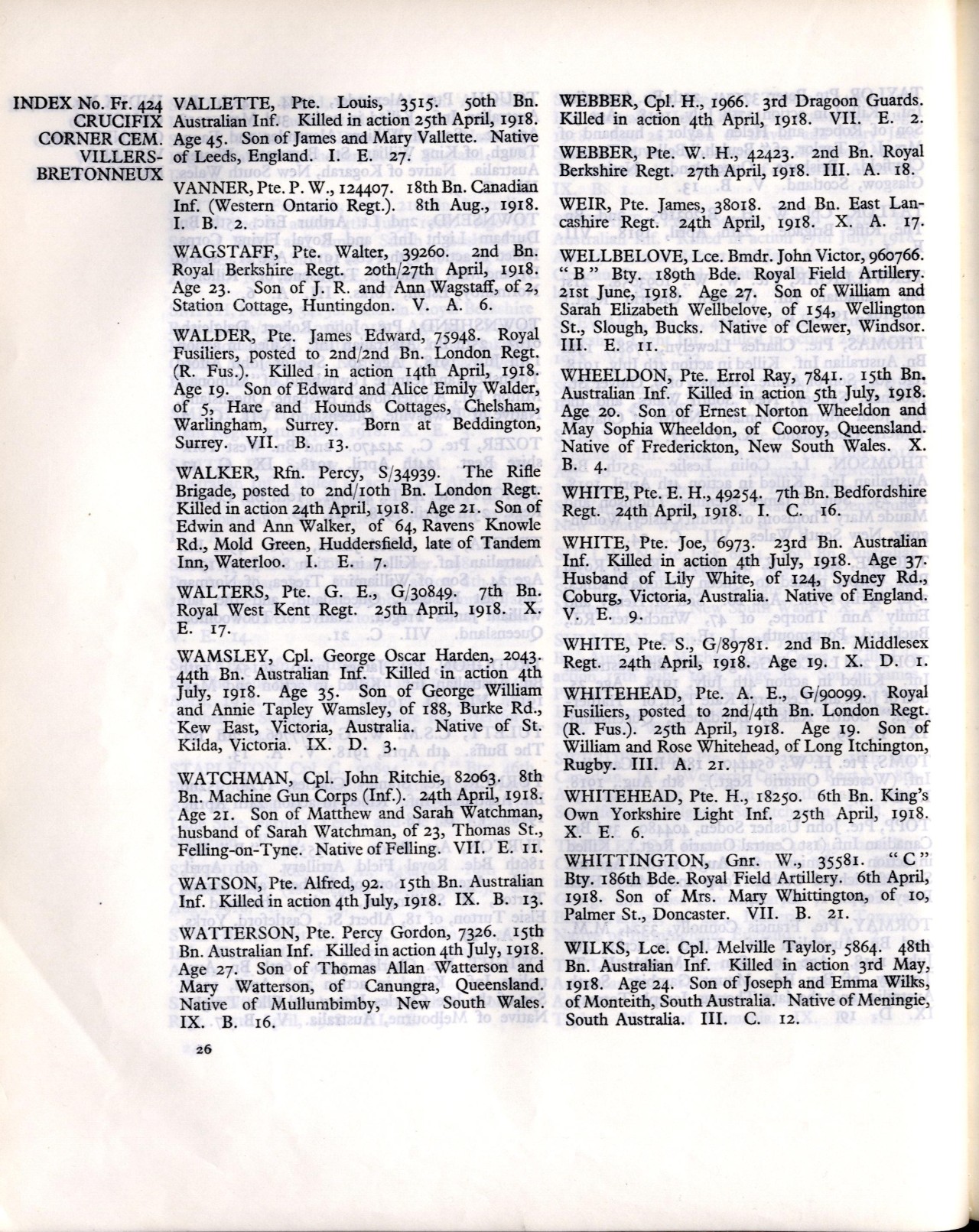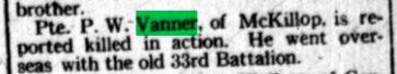 It was during this advance in heavy mist where Private Vanner fell in action performing his duties.