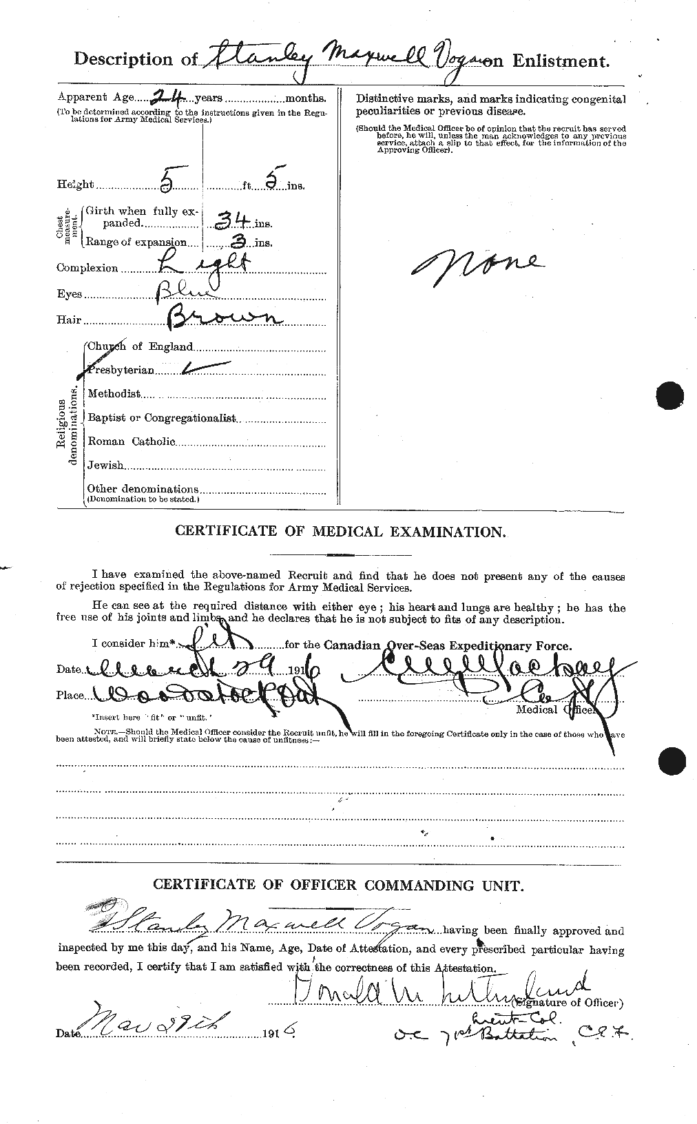 Originally f the 75th Battalion C.E.F. and brother to Lindsay Clarence Vogan who did serve in the 18th Battalion.