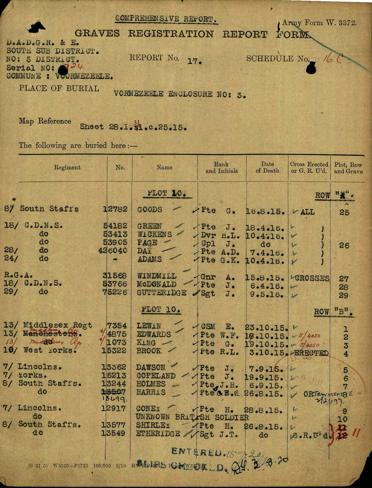 Family Search: Private Herbert Luther Wickens was born on 11 February 1895, in Brading, Isle of Wight, Hampshire, England as the son of George Wickens and Kate. He immigrated to Quebec City, Quebec, Canada in 1913. He registered for military service in 1914. In 1914, at the age of 19, his occupation is listed as railroad employee. He died on 10 April 1916, in Ieper, West Flanders, Belgium, at the age of 21, and was buried in Ieper, West Flanders, Belgium.