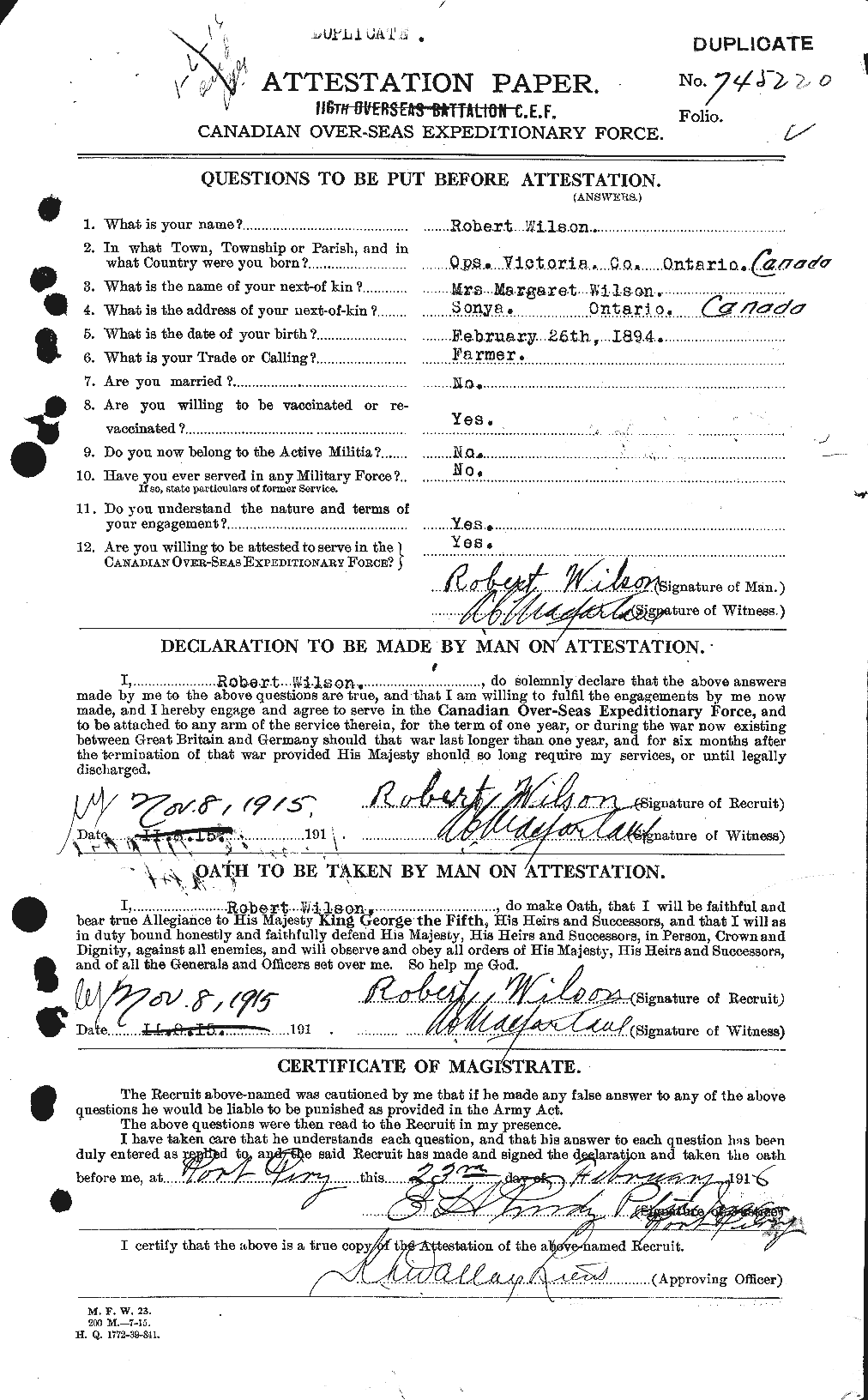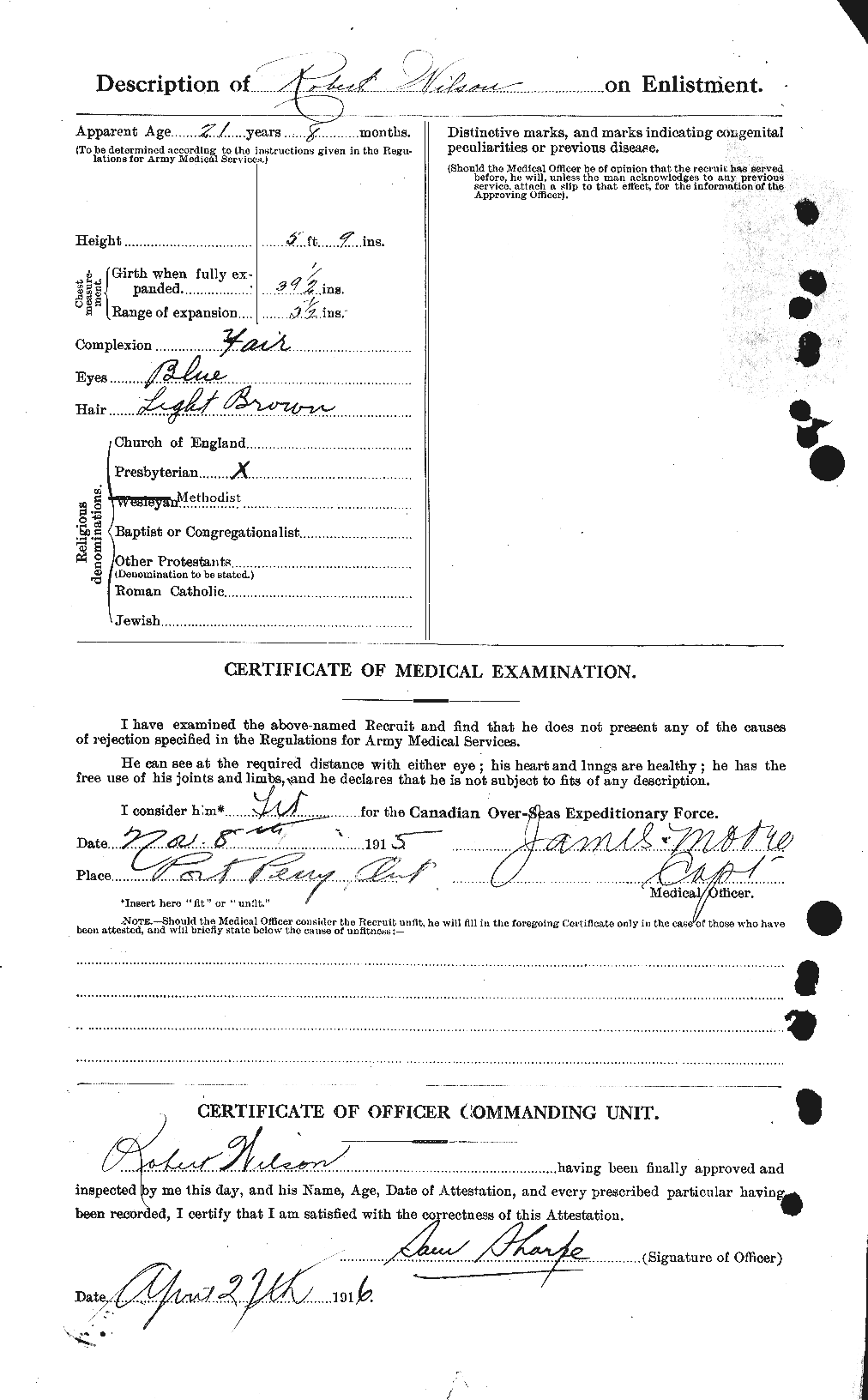 Wilson, Robert Thorton: Service no. 745220 CVWM Page Digitized Service Record Source: January 1917 Casualty. Find-A-Grave Possibly Private Robert Thorton Wilson. Via Twitter. Share this: Click to email a link to a friend (Opens in new window) Email Click to share on Facebook (Opens in new window) Facebook Click to share on X (Opens in new window) X Click to share on Reddit (Opens in new window) Reddit Click to share on LinkedIn (Opens in new window) LinkedIn Click to print (Opens in new window) Print Click to share on Tumblr (Opens in new window) Tumblr Click to share on Pocket (Opens in new window) Pocket Click to share on Pinterest (Opens in new window) Pinterest Click to share on Telegram (Opens in new window) Telegram Click to share on WhatsApp (Opens in new window) WhatsApp Like Loading...