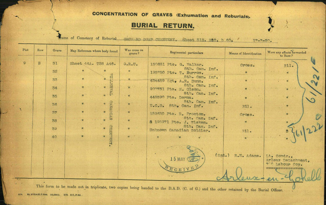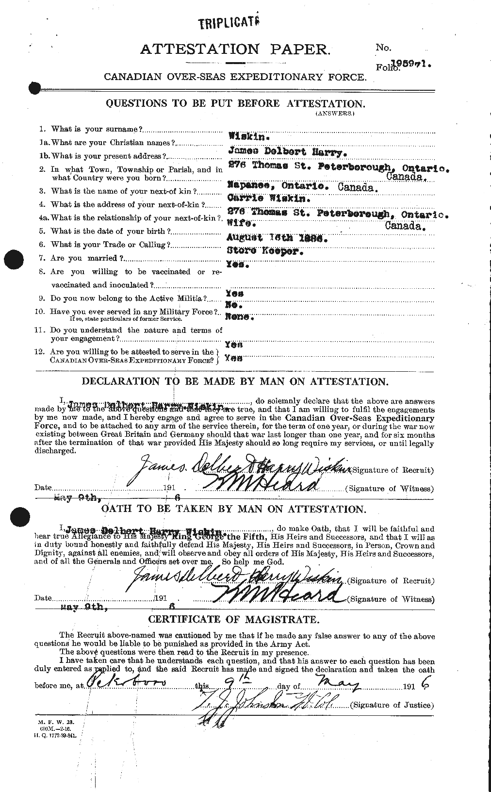 Wiskin, James Delbert Harry: Service no. 195971 CVWM Page Digitized Service Record Source: May 1917 casualty. Find-A-Grave Grave Marker – A photograph of the headstone at the Orchard Dump Cemetery. May he rest in peace.(J.Stephens). Source: CVWM Orchard Dump Cemetery – Orchard Dump Cemetery, Pas de Calais, France (J.Stephens). Source: CVWM Share this: Click to email a link to a friend (Opens in new window) Email Click to share on Facebook (Opens in new window) Facebook Click to share on X (Opens in new window) X Click to share on Reddit (Opens in new window) Reddit Click to share on LinkedIn (Opens in new window) LinkedIn Click to print (Opens in new window) Print Click to share on Tumblr (Opens in new window) Tumblr Click to share on Pocket (Opens in new window) Pocket Click to share on Pinterest (Opens in new window) Pinterest Click to share on Telegram (Opens in new window) Telegram Click to share on WhatsApp (Opens in new window) WhatsApp Like Loading...