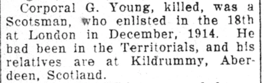 Young, George: Service no. 54109 CVWM Page Digitized Service Record Source: K.I.A. September 1916. Find-A-Grave Source: Toronto Telegram. October 1916. Via David Archer. Share this: Click to email a link to a friend (Opens in new window) Email Click to share on Facebook (Opens in new window) Facebook Click to share on X (Opens in new window) X Click to share on Reddit (Opens in new window) Reddit Click to share on LinkedIn (Opens in new window) LinkedIn Click to print (Opens in new window) Print Click to share on Tumblr (Opens in new window) Tumblr Click to share on Pocket (Opens in new window) Pocket Click to share on Pinterest (Opens in new window) Pinterest Click to share on Telegram (Opens in new window) Telegram Click to share on WhatsApp (Opens in new window) WhatsApp Like Loading...