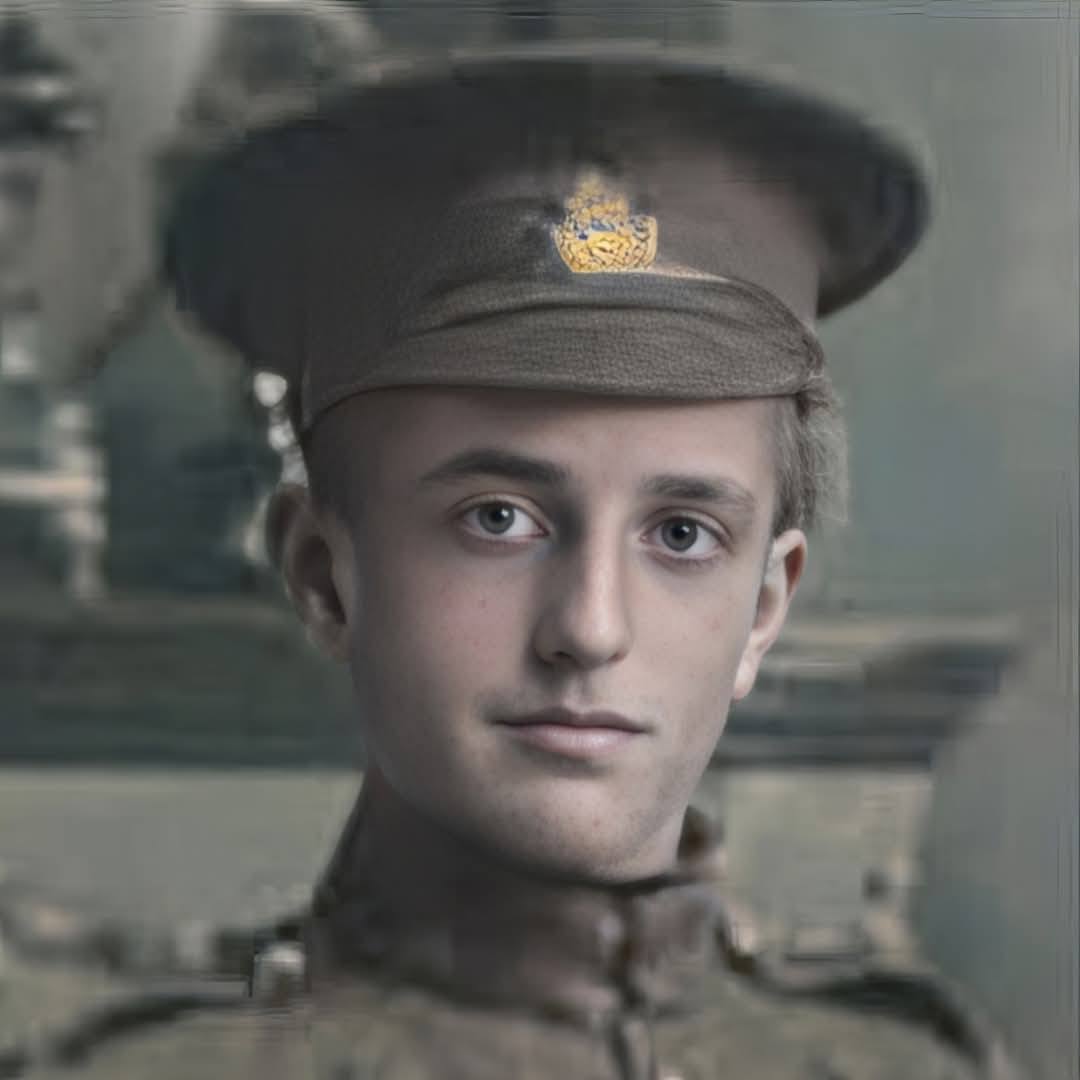 Digitally enhanced photographs of Private Collacutt by a family member. Makes him look younger.Collacutt, Jack Harland: Service no. 745052, with his sister and mother Circa 1916. Source Michael Collacutt via Canadian Expeditionary Force Research Group post at their Facebook Group.