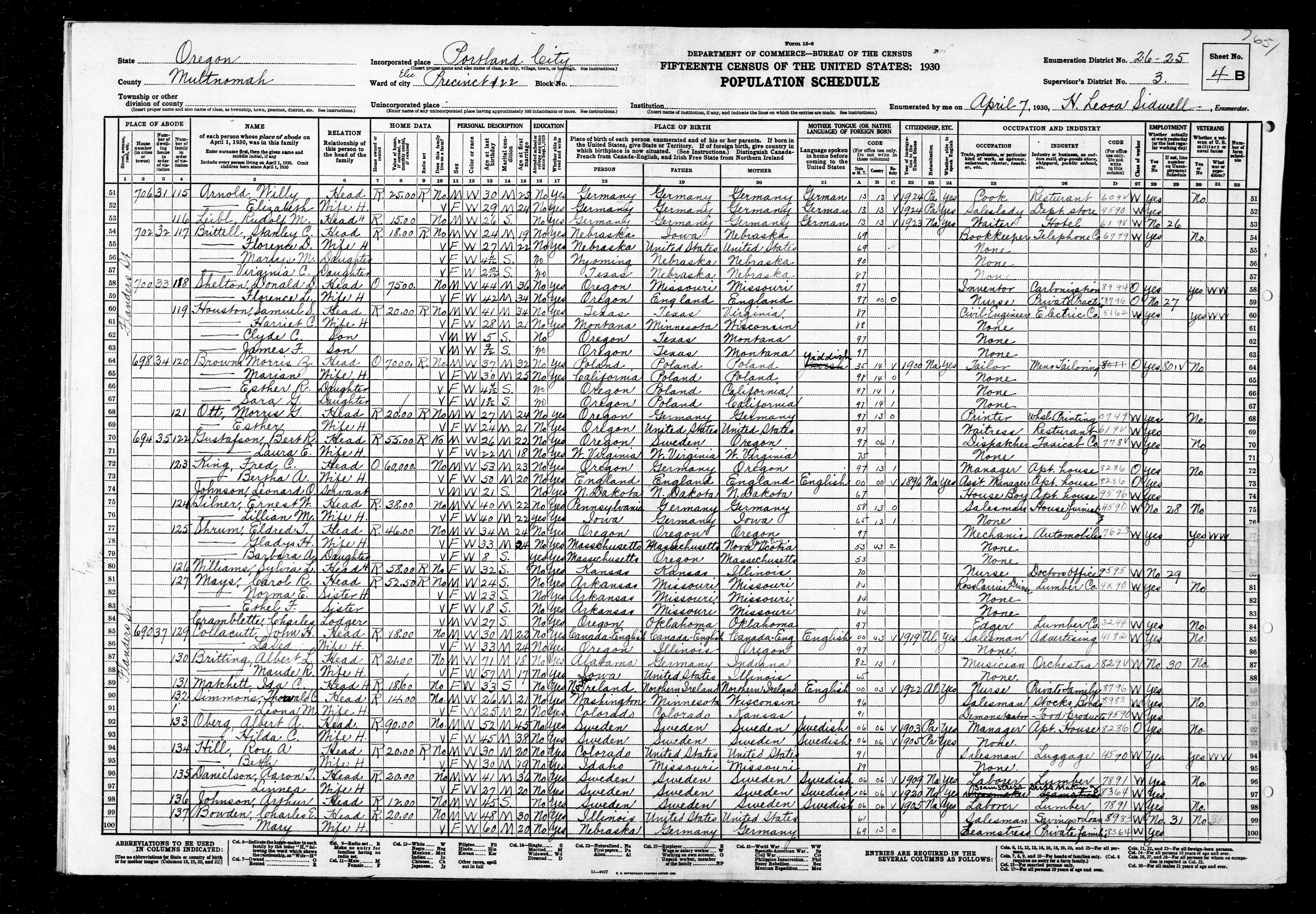 Portland, Multnomah, Oregon, United States. . Owner of an advertising agency. US Census.