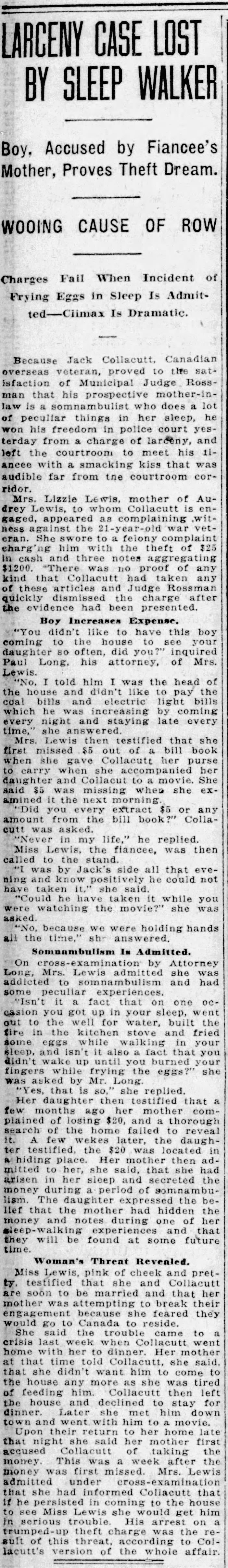 Assigns $15.00 per month to his mother, Mrs. H.S. Collacutt.