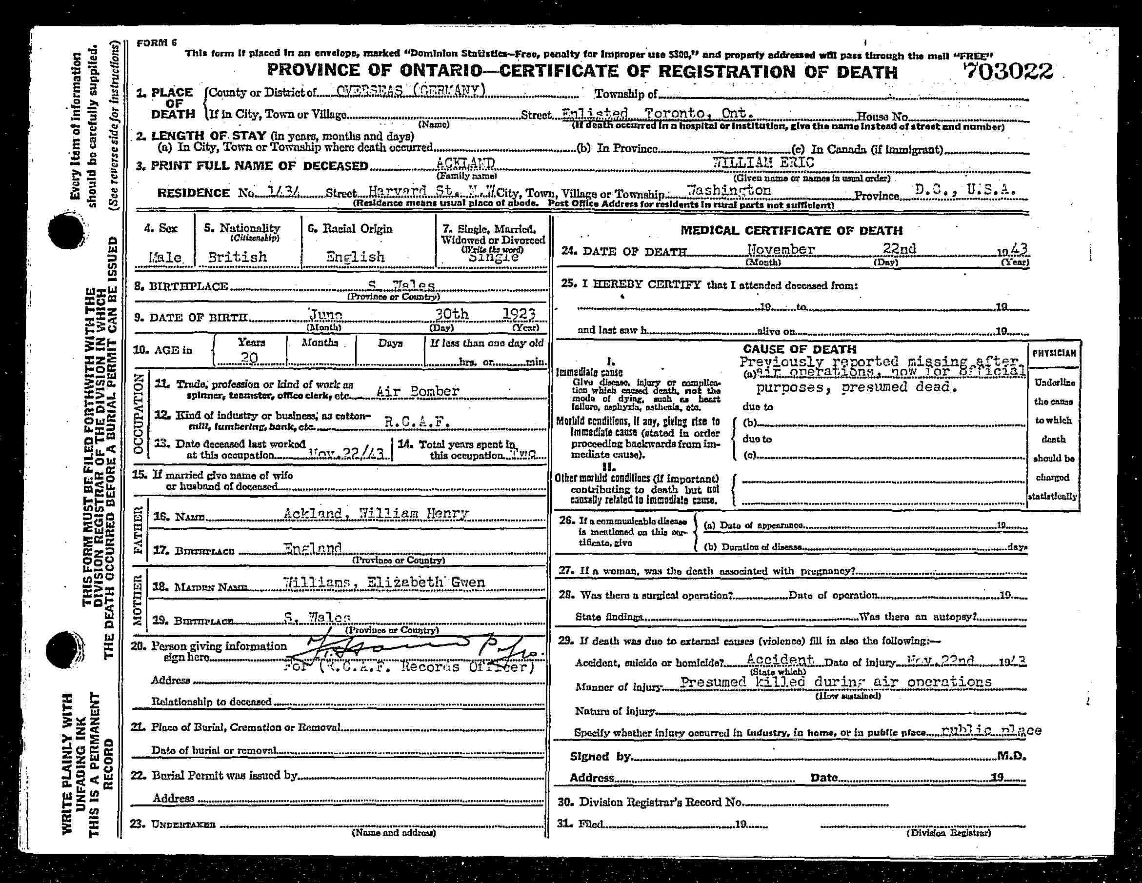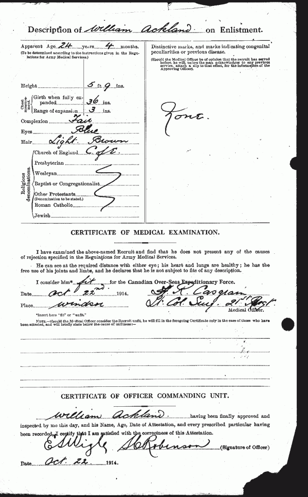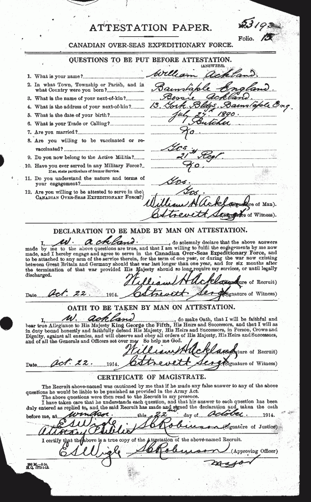 Ackland, William Henry: Service no. 53193 Digitized Service Record Source: Per record of promotion in George Willard Hogg, reg. no. 775981 record of service. Find-A-Grave Share this: Click to email a link to a friend (Opens in new window) Email Click to share on Facebook (Opens in new window) Facebook Click to share on X (Opens in new window) X Click to share on Reddit (Opens in new window) Reddit Click to share on LinkedIn (Opens in new window) LinkedIn Click to print (Opens in new window) Print Click to share on Tumblr (Opens in new window) Tumblr Click to share on Pocket (Opens in new window) Pocket Click to share on Pinterest (Opens in new window) Pinterest Click to share on Telegram (Opens in new window) Telegram Click to share on WhatsApp (Opens in new window) WhatsApp Like Loading...