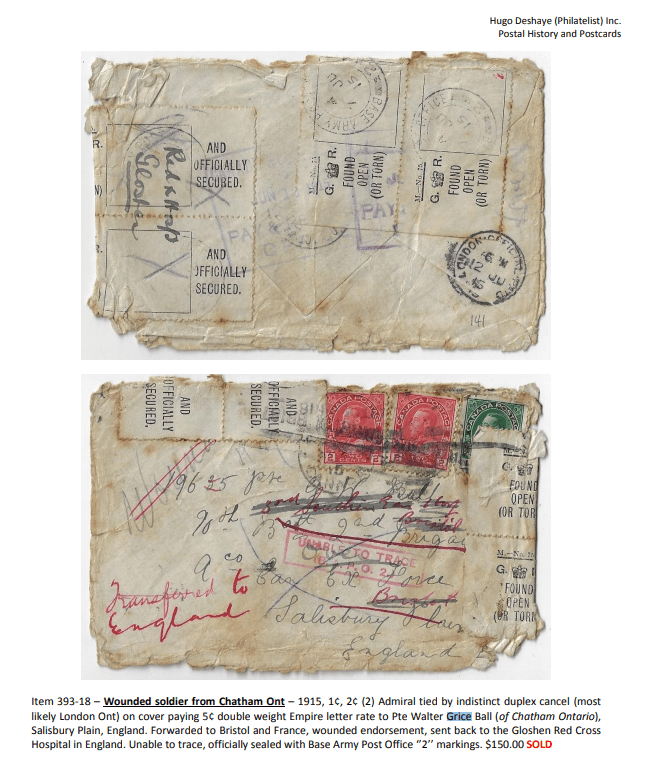 | December 12, 1918 | SOS | SOS from 4th Reserve Battalion to proceed home to Canada. |